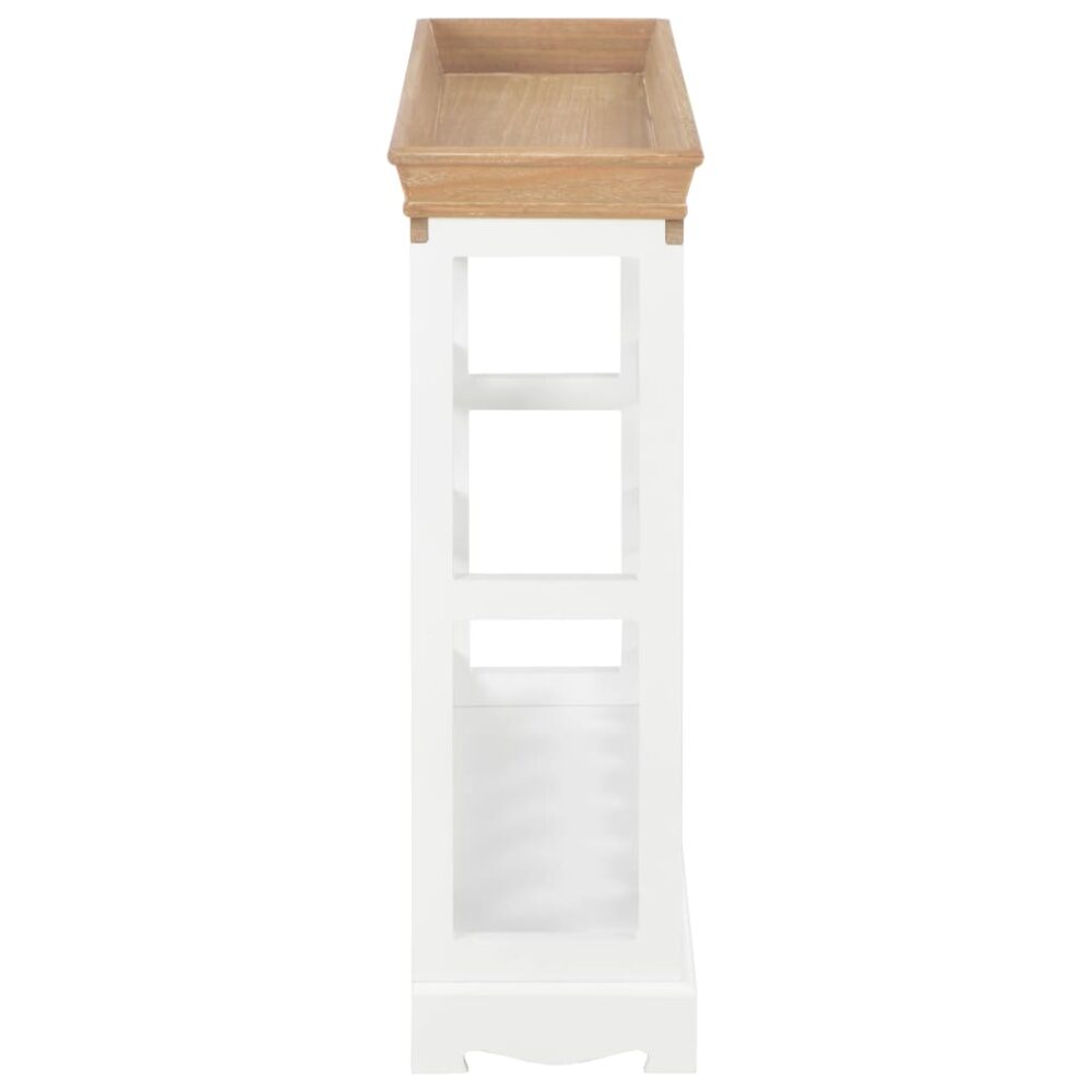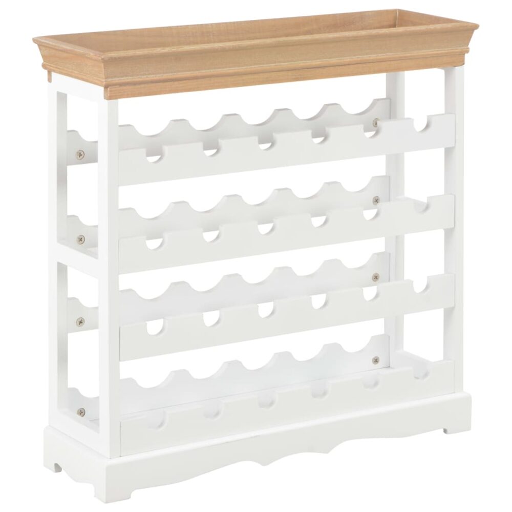 Esta garrafeira de alta qualidade, em branco e castanho, irá adequar-se ao seu ambiente habitacional, podendo colocá-la na sala de estar, na sala de jantar ou no corredor. Este armário aberto para vinho oferece-lhe um amplo espaço de armazenamento para garrafas de vinho. As quatro prateleiras possuem capacidade para armazenar 24 garrafas de vinho. A bandeja superior pode ser usada como uma área de armazenamento para objetos de vidro, abridores e outros itens. Este organizador de vinho simples e elegante é, sem dúvida, obrigatório para todos os amantes do vinho.