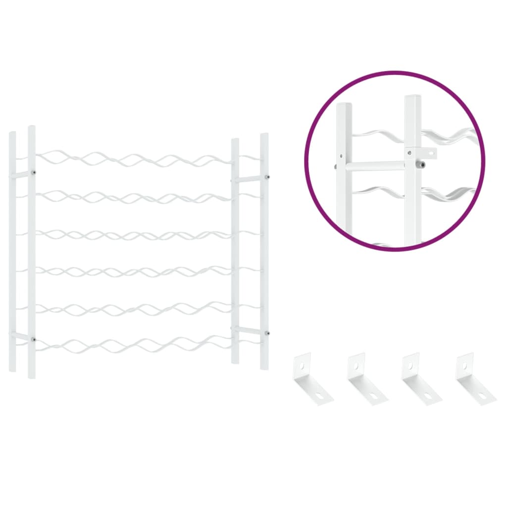 Esta garrafeira é conveniente para organizar e armazenar os seus vinhos favoritos. Espaço de arrumação amplo: a garrafeira apresenta 6 prateleiras que comportam até 36 garrafas de vinho. Cada prateleira comporta 6 garrafas.Design moderno: esta garrafeira também é um complemento moderno para armazenar vinho em cozinhas modernas, despensas e bares.Alta qualidade: o suporte de garrafas foi concebido inteiramente em metal e não ganha ferrugem nem se deforma. A sua superfície é muito suave, fazendo com que evite arranhões nas garrafas. AVISO:Para evitar que o produto se vire, deve utilizar o dispositivo de fixação na parede fornecido.