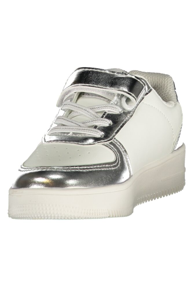 Apresenta fecho em velcro e cadarços elásticos, detalhes prateados contrastantes, palmilha removível, estampa e logótipo, ideal para uso diário e desportivo.