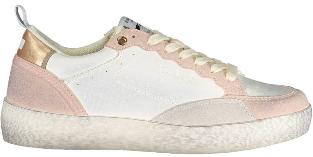 Apresenta cadarços tradicionais, detalhes contrastantes em rosa, estampa e logótipo, ideal para uso diário e desportivo.