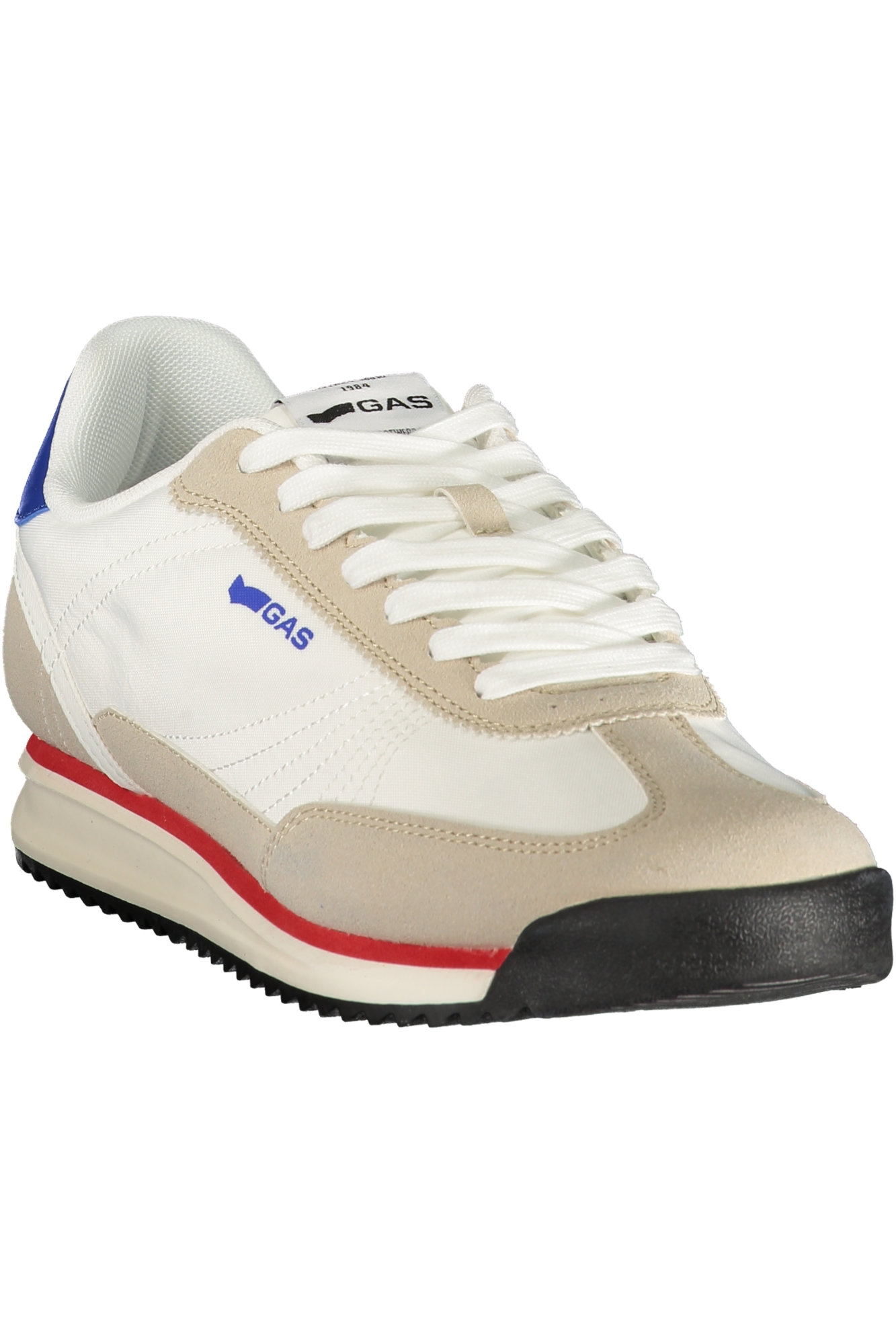 Apresenta cadarços tradicionais, detalhes contrastantes em vermelho ,azul palmilha removível, estampa e logótipo, ideal para uso diário e desportivo.