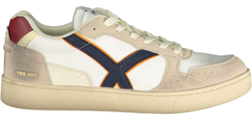 Apresenta cadarços tradicionais, detalhes contrastantes em azul, bege e bordô, palmilha removível, estampa e logótipo, ideal para uso diário e desportivo.