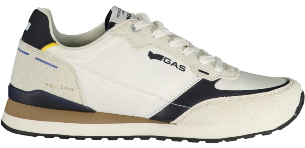 Apresenta cadarços tradicionais, detalhes contrastantes em marrom e azul, palmilha removível, estampa e logótipo, ideal para uso diário e desportivo.