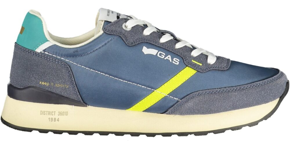 Tênis desportivo com design moderno e confortável. Apresenta cadarços tradicionais, detalhes contrastantes em verde e amarelo, palmilha removível, estampa e logótipo, ideal para uso diário e desportivo.