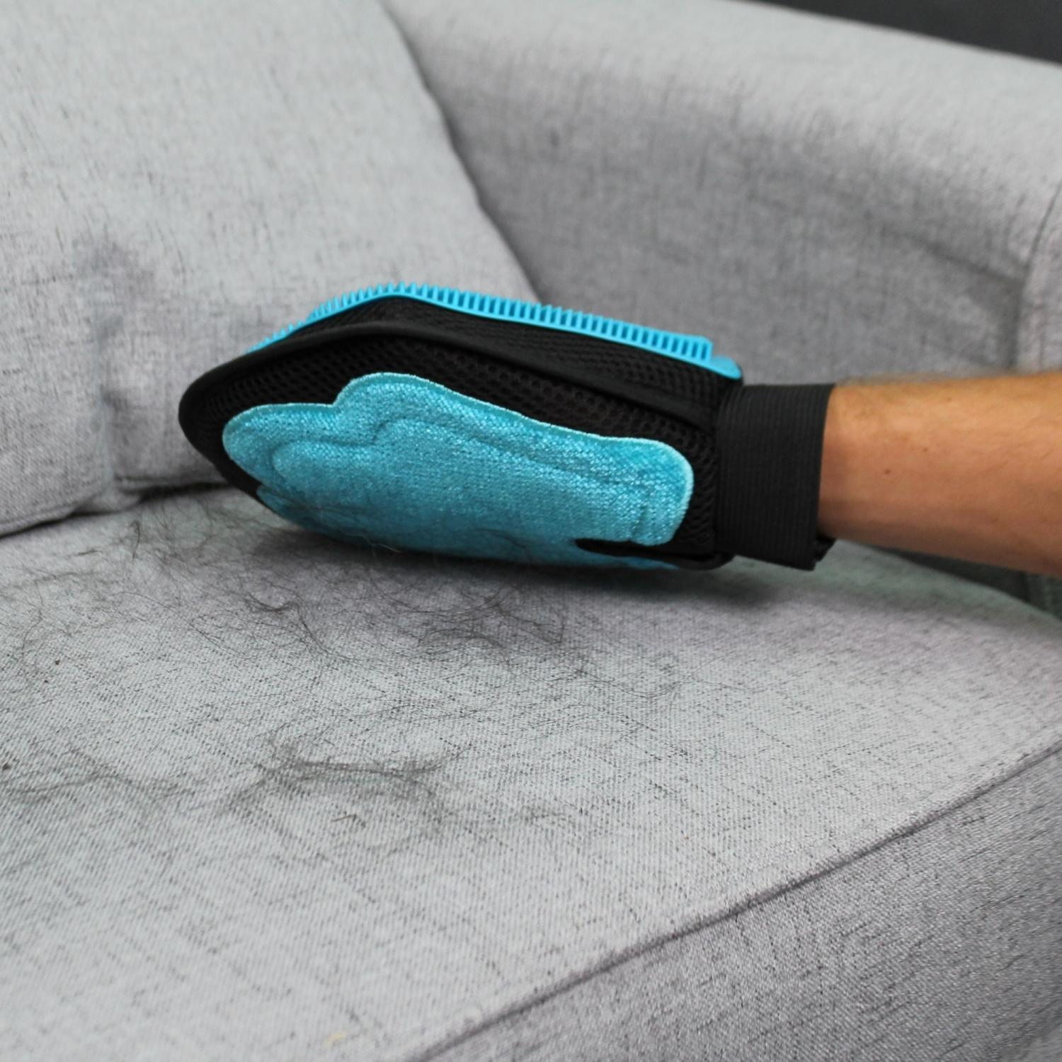 Ofereça aos seus amigos de quatro patas uma sessão extra de carinho de bem-estar! A prática luva de limpeza não apenas remove pêlos mortos e poeira rapidamente. Suas protuberâncias de borracha macia também estimulam a circulação sanguínea e atuam como uma massagem calmante. Particularmente importante: a limpeza regular da pelagem do seu cão e gato irá ajudá-lo a eliminar parasitas irritantes, como pulgas ou carrapatos, a tempo. A luva é adequada para casacos longos e curtos e pode ser usada confortavelmente graças ao velcro.