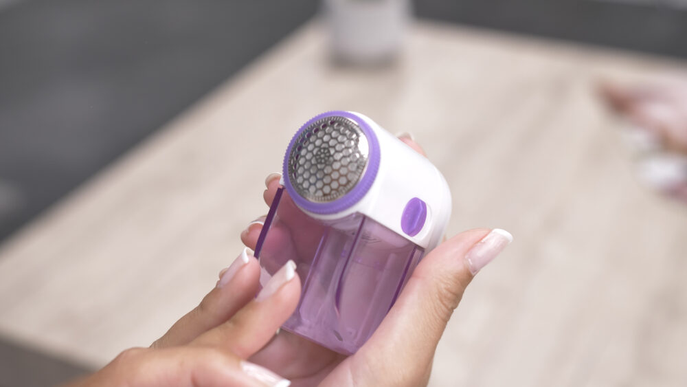 • Este aparelho é composto por uma grelha e por lâminas rotativas que removem os fiapos dos pulôveres