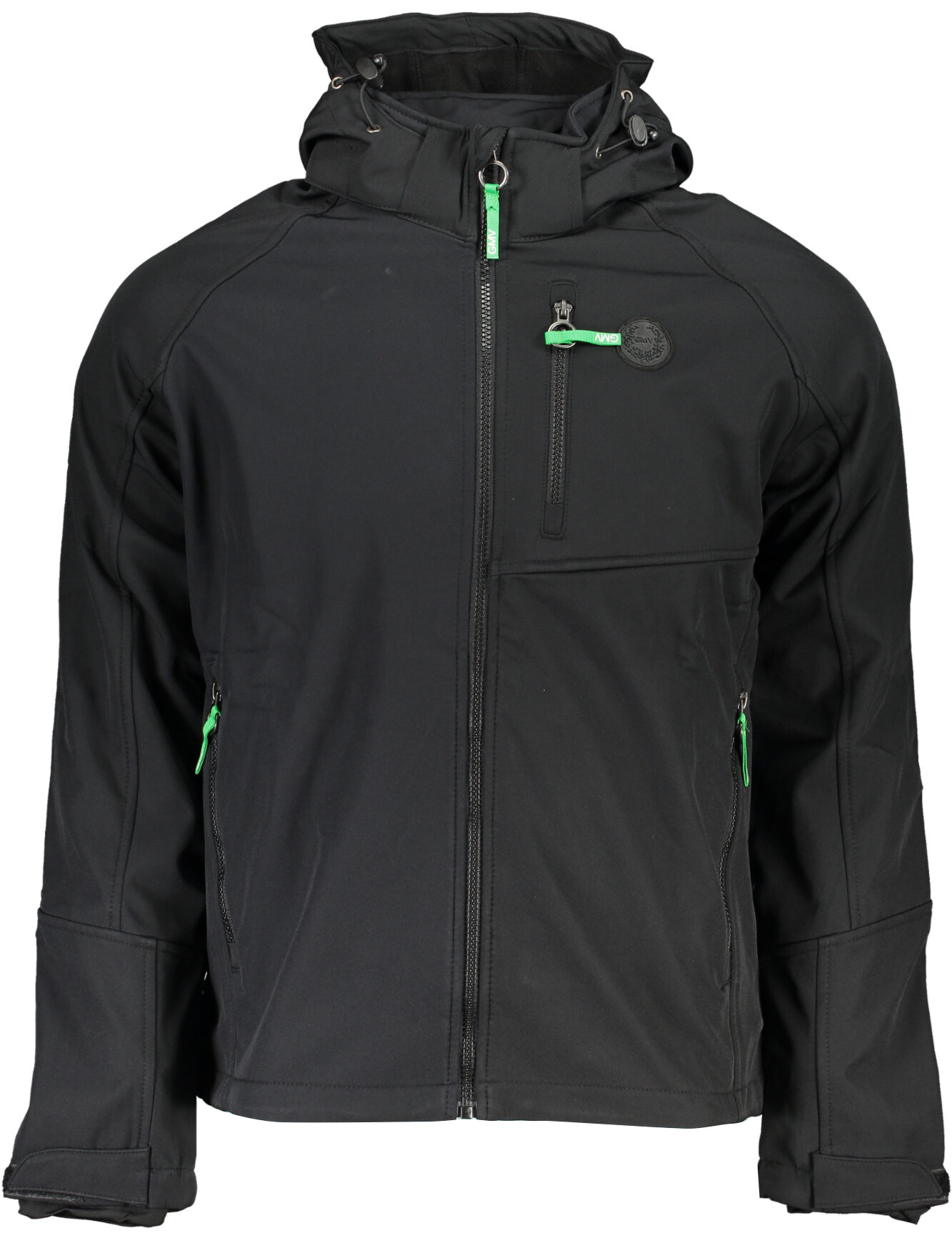 Casaco de manga comprida com capuz removível, 2 bolsos externos e 2 bolsos internos, zíper e logótipo.