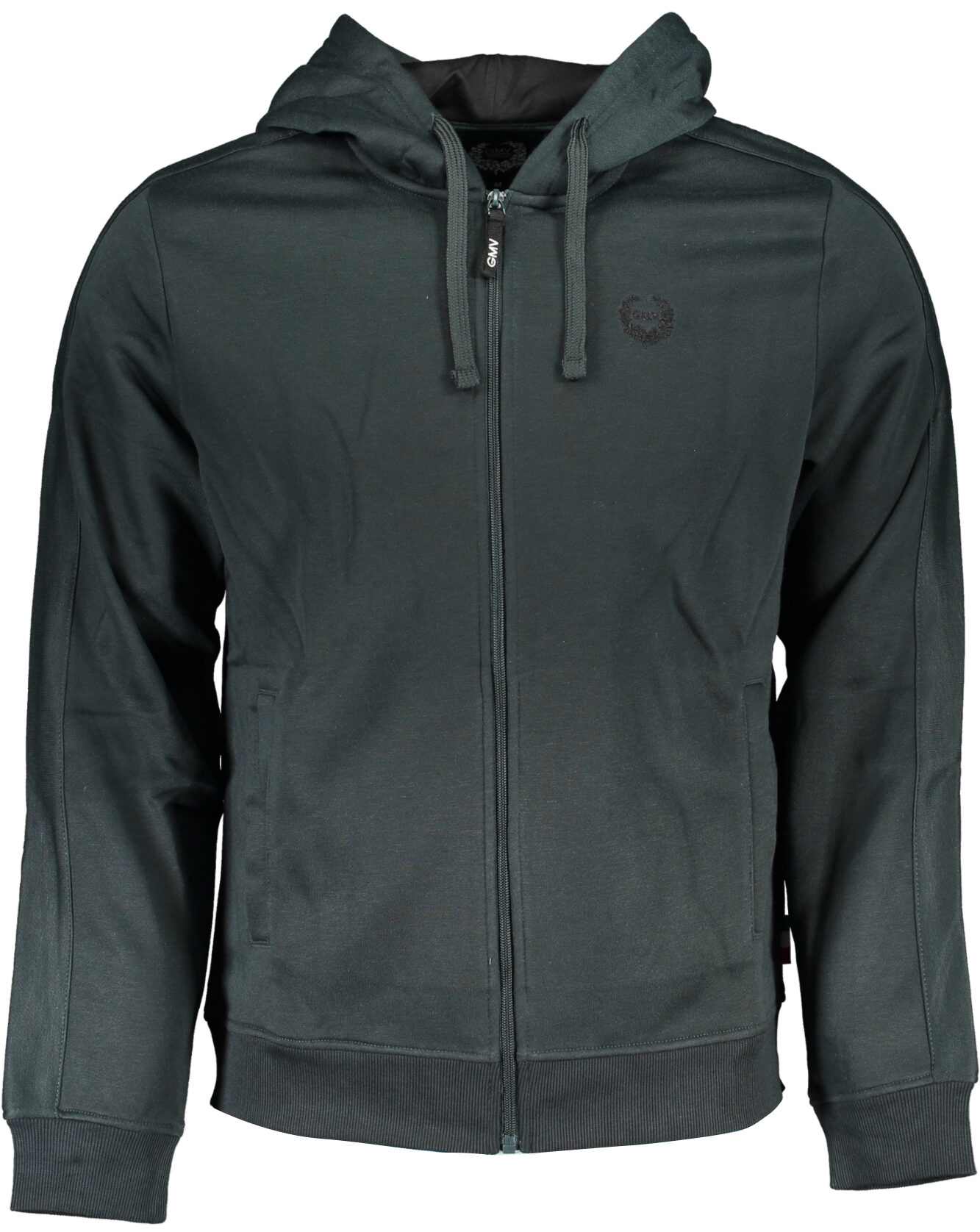 Casaco de manga comprida com capuz, 2 bolsos, zíper e logótipo bordado.