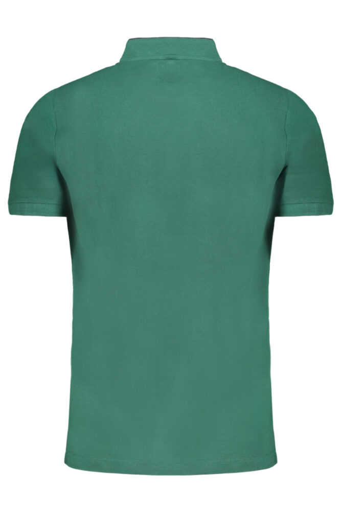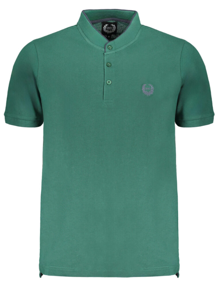 Pólo manga curta, gola mandar, 3 botões, detalhes contrastados, bordado, logotipo