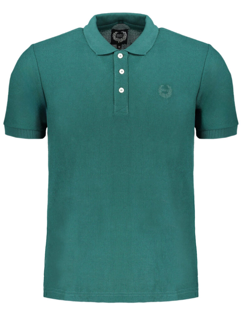 Pólo manga curta, 3 botões, contraste, logotipo bordado