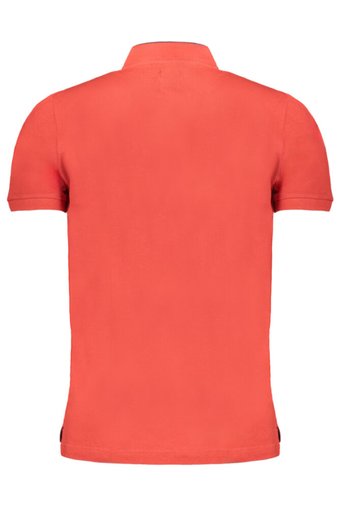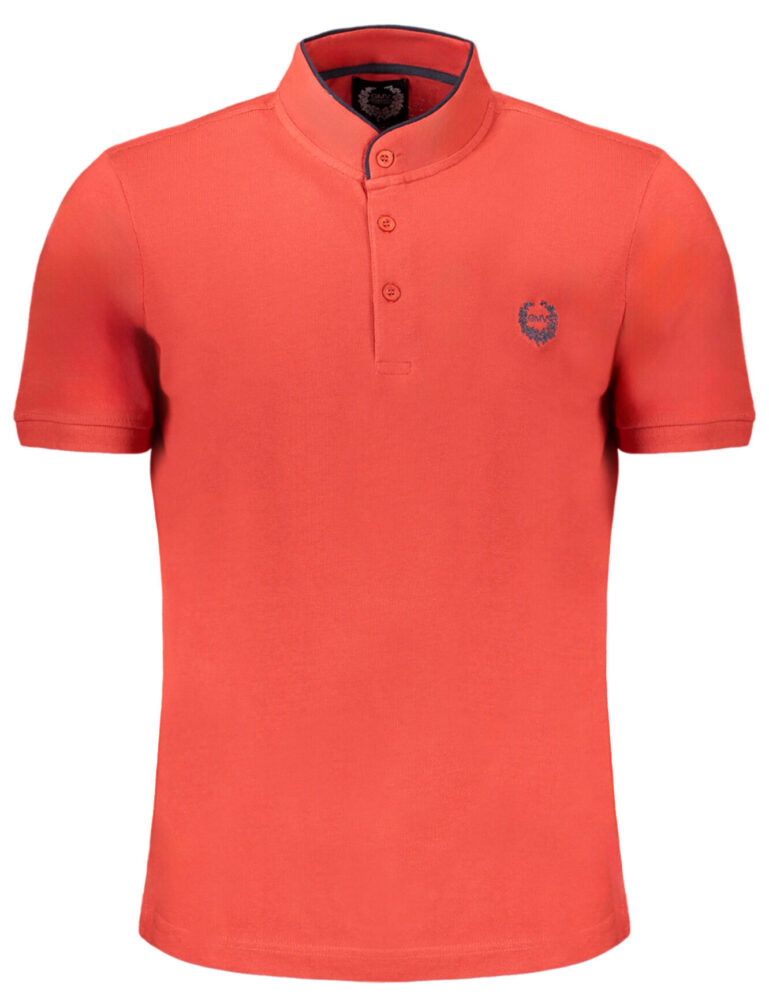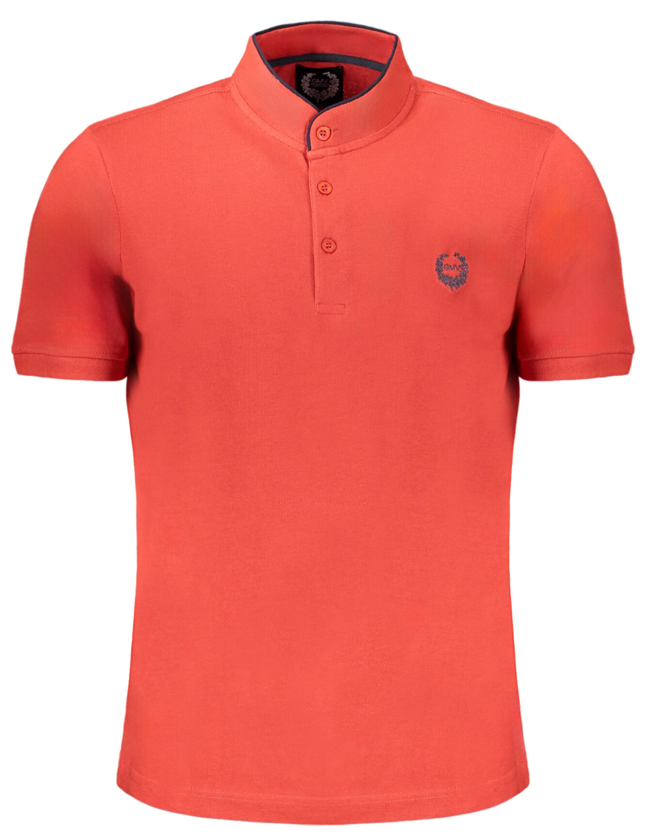 Pólo manga curta, gola mandar, 3 botões, detalhes contrastados, bordado, logotipo
