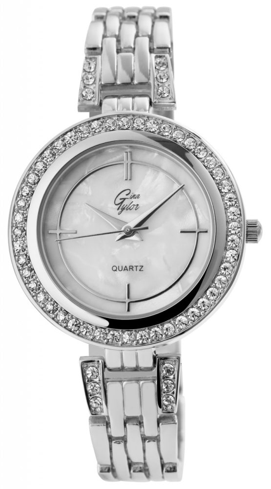 O relógio de pulso feminino analógico de 3 ponteiros possui um movimento de quartzo de alta qualidade. A pulseira de metal tem 14 mm de largura na alça e pode ser aberta e fechada com um fecho de clipe. Os elementos lug às seis e às doze horas são decorados cada um com 6 pedras simili. O comprimento total do relógio é de 18,5 cm. A caixa de metal com vidro mineral tem um diâmetro de 34 mm e uma altura de 8 mm. O fundo da caixa é feito de aço inoxidável.