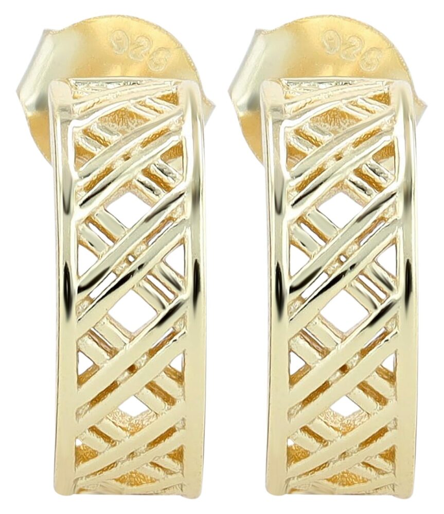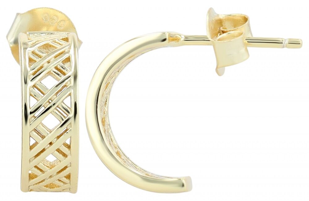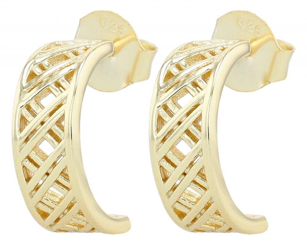 Gita”, o brinco de realce com um comprimento de 1,4 cm e uma largura de 0,5 cm, é um brinco de meia argola com um fecho de encaixe e um padrão de rede arejado que é simultaneamente moderno e elegante. Gita” está disponível em dourado e prateado, cada um com uma espessura de material de 0,15 cm. As jóias elegantes para todas as ocasiões são revestidas a ródio, o que garante que este bonito brinco de meia argola dure muito tempo e lhe dá um brilho radiante. O banho de ródio também protege contra o embaciamento, garantindo que desfrutará desta peça de joalharia durante muito tempo.