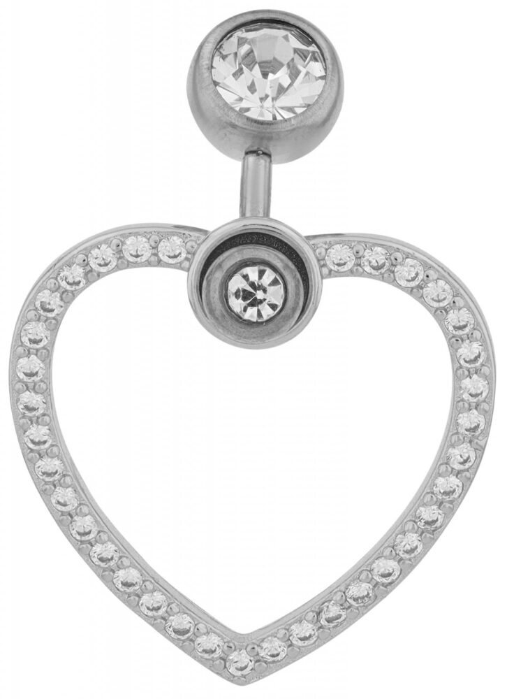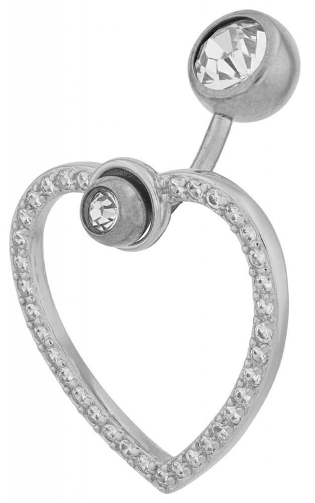 Este elegante piercing no umbigo apresenta um design brilhante e é feito de aço inoxidável de alta qualidade. A haste tem 11 mm de comprimento e 1,8 mm de espessura, o que garante um ajuste seguro e confortável. O que mais chama a atenção é o pingente de coração aberto e móvel no meio, artisticamente emoldurado com 35 pedras de zircônia. O pingente mede 24 x 24 x 2,5 mm e dá um toque luxuoso ao piercing.