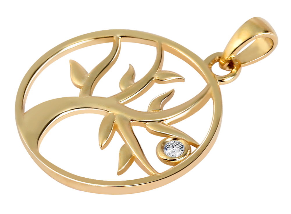 O pingente circular da árvore da vida é feito de ouro 375 e decorado com diamantes finos. A cor ouro amarelo com diamantes integrados garante que o pingente se torne uma joia elegante. As dimensões do pingente consistem em diâmetro de 13,5 mm, largura de 1 mm e espessura de 1 mm. A joia é particularmente adequada como presente para aniversário de casamento, noivado ou aniversário.