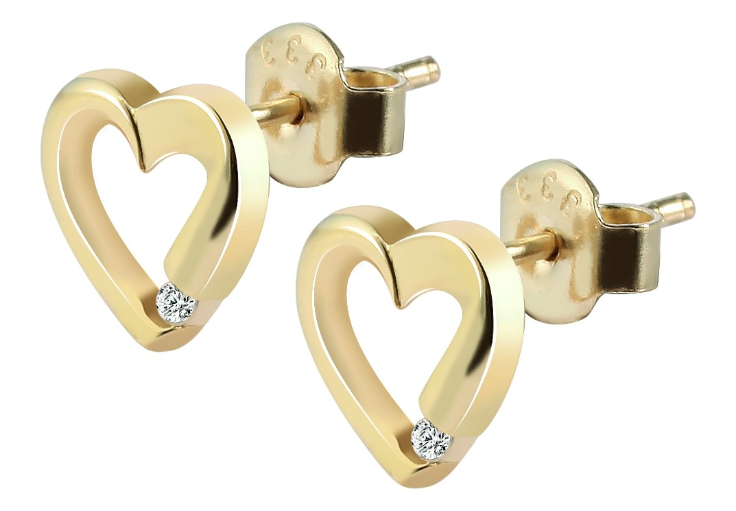 Os brincos em forma de coração estão disponíveis em ouro 333 ou 375. Os brincos são em ouro amarelo e decorados adicionalmente com uma pedra de zircônia brilhante na parte inferior do coração. O acabamento branco cria um contraste atraente. Os brincos dourados são fechados com um prático parafuso borboleta, que também é feito de ouro verdadeiro, pode ser operado facilmente e garante uma fixação segura no orifício da orelha. As dimensões resultam de um comprimento de 8 mm, uma largura de 8 mm e uma espessura de material de 2 mm.