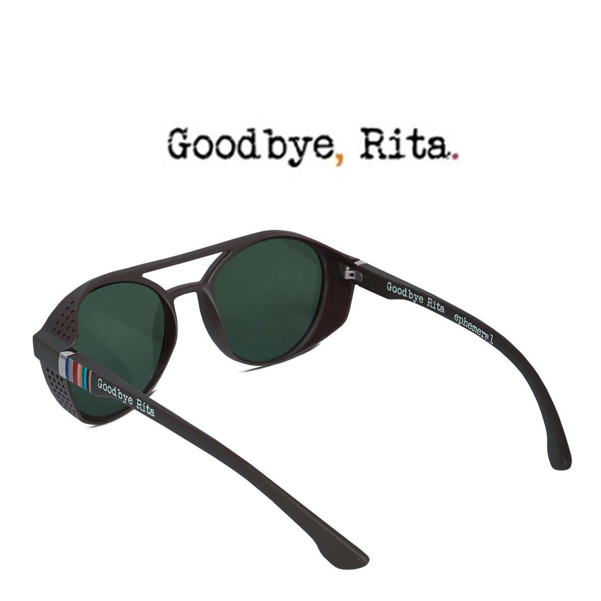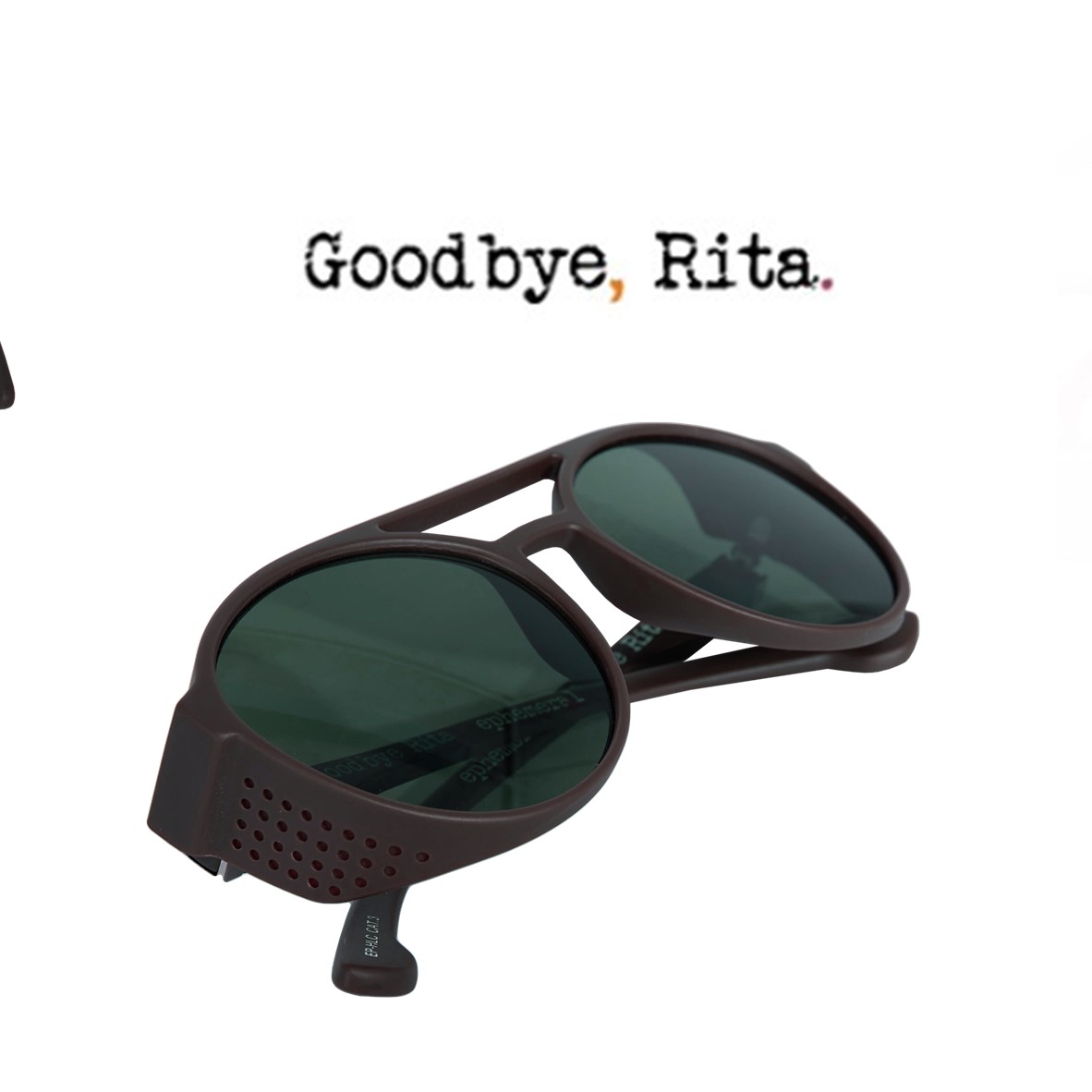 Medidas: Frente 14,5cm Altura 5,5cm Sim 13,5cm Cada óculos inclui embalagem corporativa, uma capa de proteção e uma camurça com o design Goodbye, Rita.