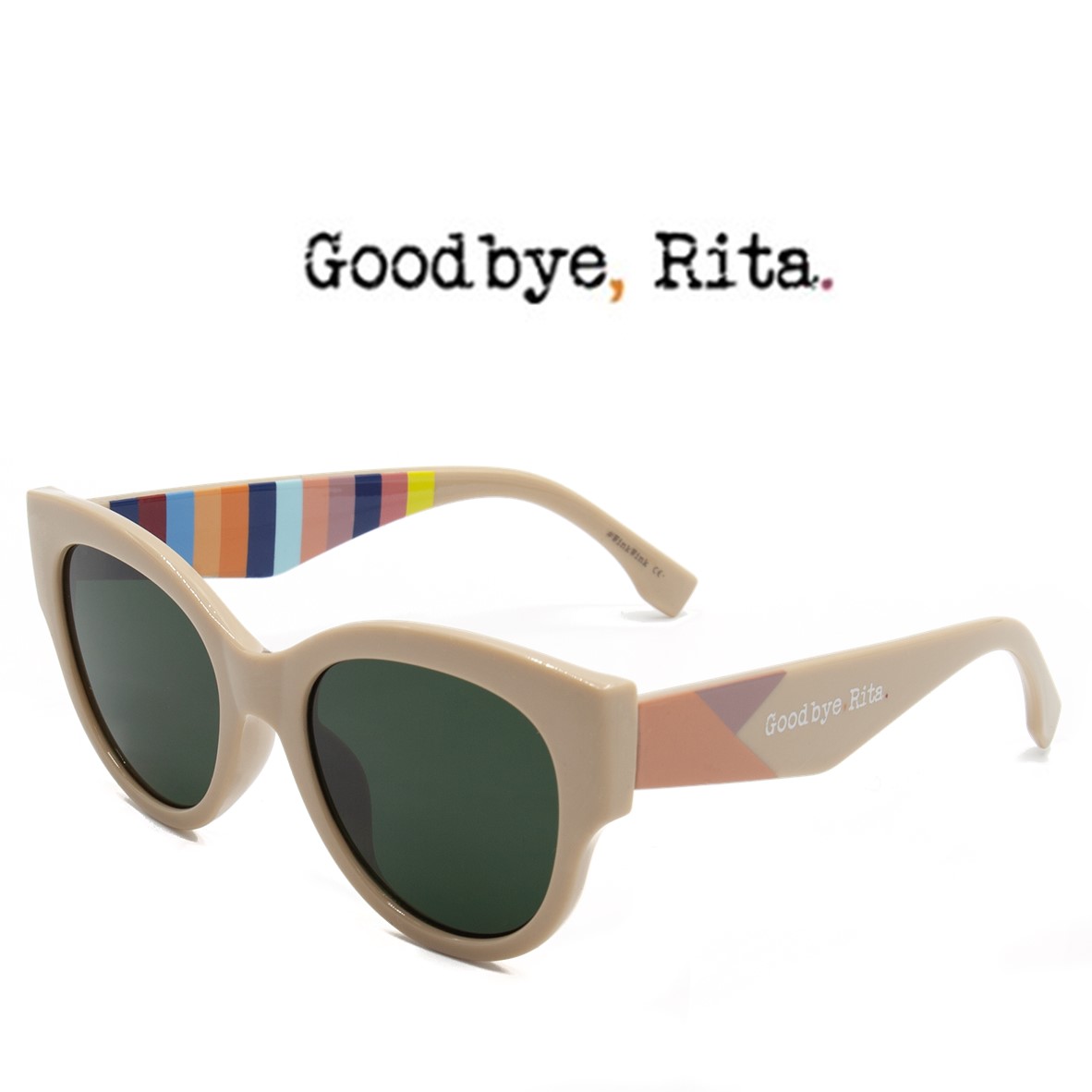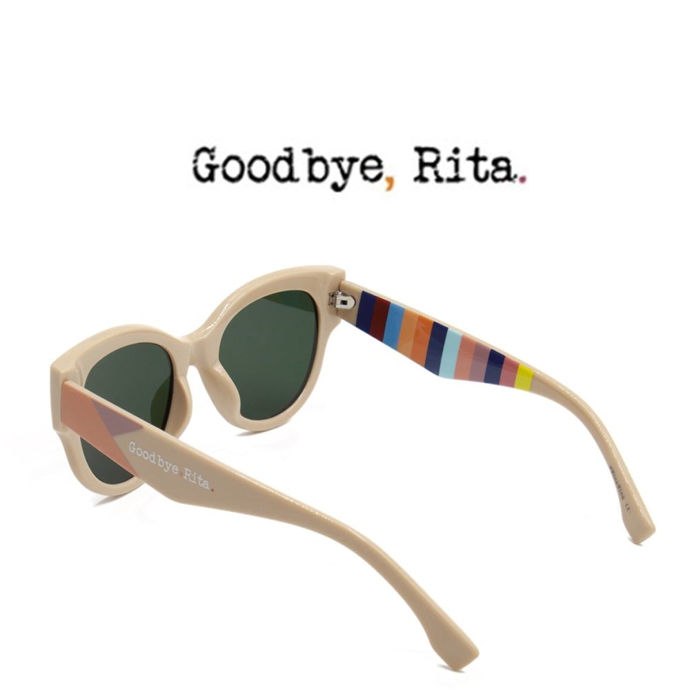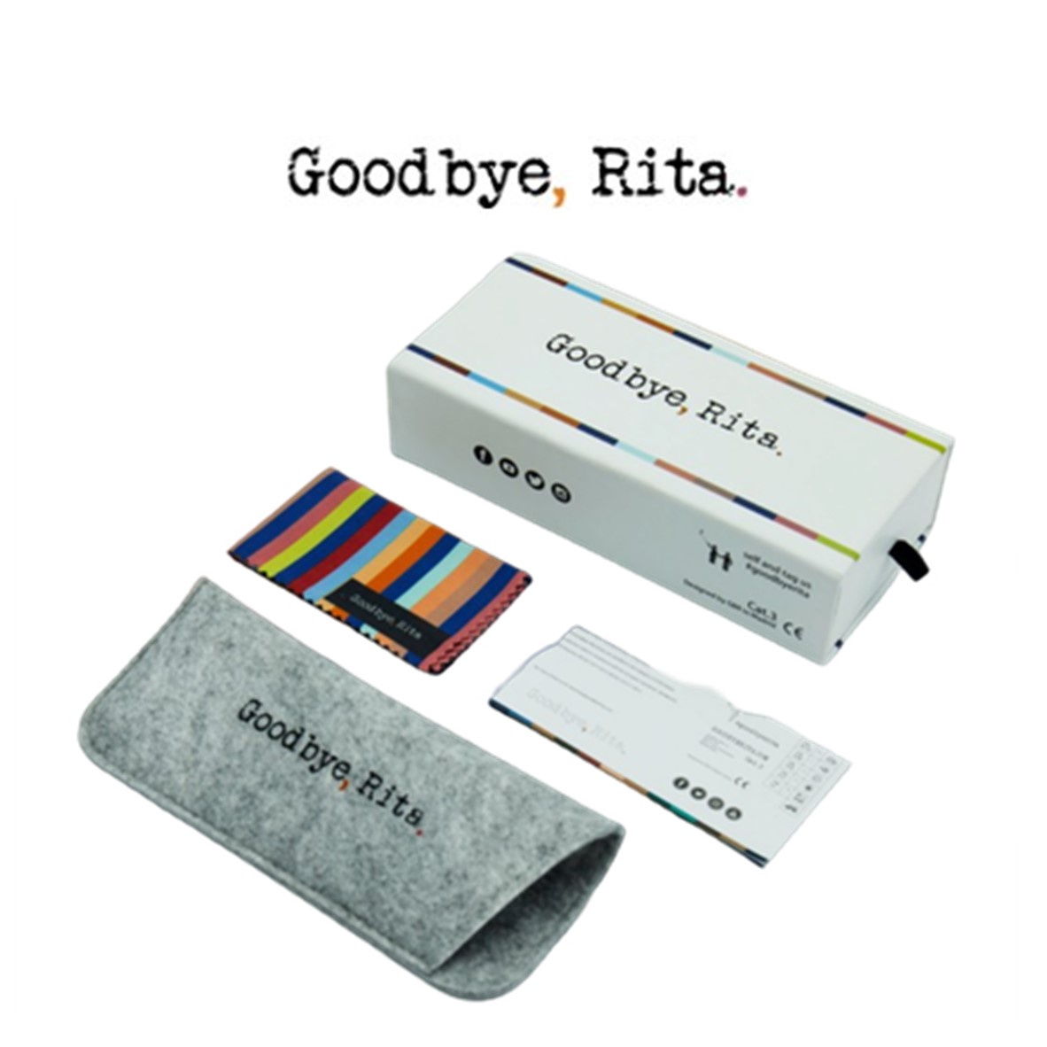 Cada óculos inclui uma embalagem corporativa, uma capa dura protetora e uma camurça com o design Goodbye, Rita.
