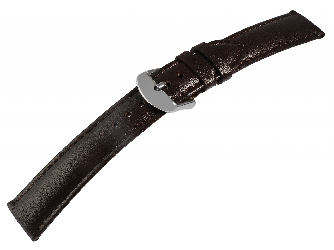 Esta pulseira de relógio marrom escuro feita de couro genuíno de alta qualidade está disponível em larguras de 12 mm, 14 mm, 16 mm, 18 mm, 20 mm, 22 mm e 24 mm, oferecendo uma opção adequada para diferentes modelos de relógio. A pulseira acolchoada é acentuada por uma costura fina marrom escura e dá ao relógio um visual particularmente elegante. O pino do fecho é 2 mm mais estreito que a largura do pino porque a tira afunila em um ponto estreito. O comprimento total da pulseira varia dependendo da largura do pino e fica entre 18 cm e 19,5 cm. A pulseira de substituição pode ser facilmente aberta e fechada com uma fivela prateada.…