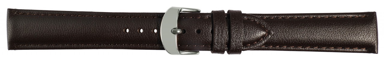 Esta pulseira de relógio marrom escuro feita de couro genuíno de alta qualidade está disponível em larguras de 12 mm, 14 mm, 16 mm, 18 mm, 20 mm, 22 mm e 24 mm, oferecendo uma opção adequada para diferentes modelos de relógio. A pulseira acolchoada é acentuada por uma costura fina marrom escura e dá ao relógio um visual particularmente elegante. O pino do fecho é 2 mm mais estreito que a largura do pino porque a tira afunila em um ponto estreito. O comprimento total da pulseira varia dependendo da largura do pino e fica entre 18 cm e 19,5 cm. A pulseira de substituição pode ser facilmente aberta e fechada com uma fivela prateada. O primeiro laço é costurado firmemente enquanto o segundo é ajustável individualmente.