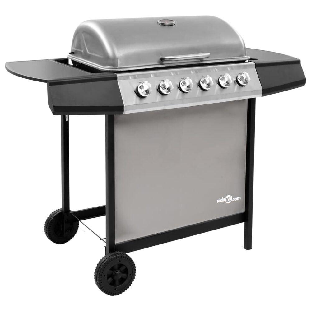 Grelhador/barbecue a gás 6 discos preto e prateado - PORTES GRÁTIS