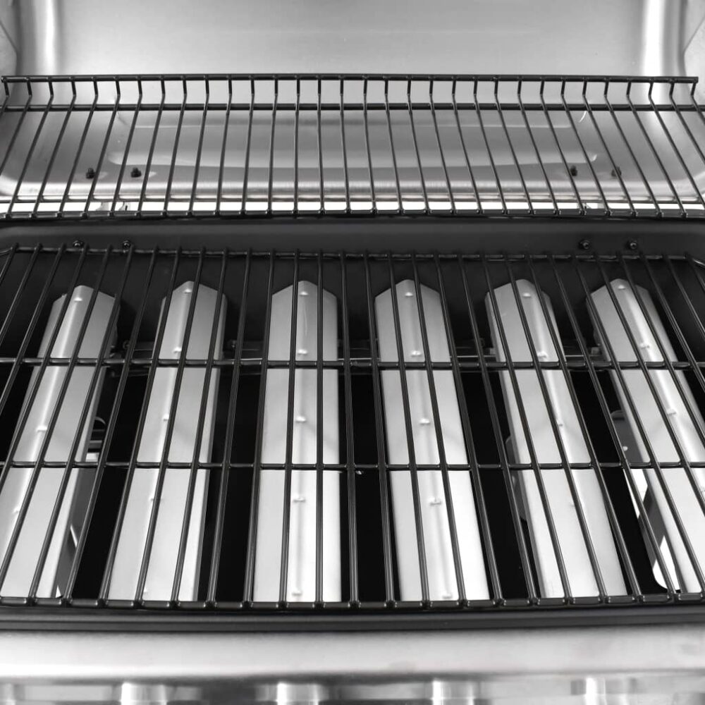 Este grelhador/barbecue a gás possui 6 discos e é ideal para preparar um banquete ao ar livre para a sua família e amigos. Fará com que a sua experiência de cozinhar ao ar livre seja fantástica, tornando sem dúvida o seu jardim numa segunda cozinha! Este grelhador a gás possui um design elegante e funcional. Apresenta uma superfície de cozinhar ampla e uma tampa resistente com um termómetro embutido que mostra corretamente a temperatura dos cozinhados. As mesas laterais oferecem um espaço de trabalho adicional para preparar molhos ou os seus pratos de acompanhamentos preferidos. Inclui também um recipiente removível para aparar a gordura, que é fácil de limpar. Feito com materiais resistentes, o grelhador é muito durável. A prateleira por baixo fornece um amplo espaço para arrumar panelas e utensílios. Graças às 2 rodas resistentes, o grelhador é fácil de deslocar. Para conectar o grelhador à botija de gás, é necessária uma mangueira de gás e um regulador de pressão adequado, que não estão incluídos na entrega. AVISO! Não utilize dentro de casa! AVISO! Este barbecue fica muito quente. Não o mova durante o funcionamento. Mantenha as crianças e os animais de estimação afastados.