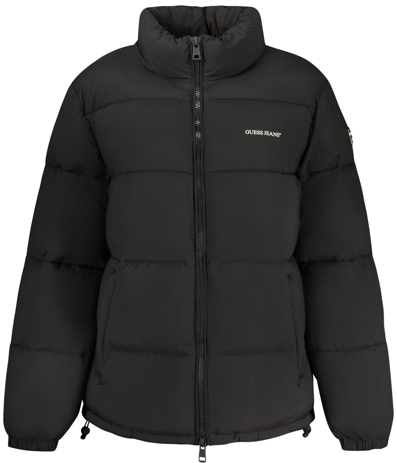 O fecho frontal em zíper proporciona praticidade, enquanto a estampa, a aplicação decorativa e o logotipo conferem identidade e estilo contemporâneo à peça.