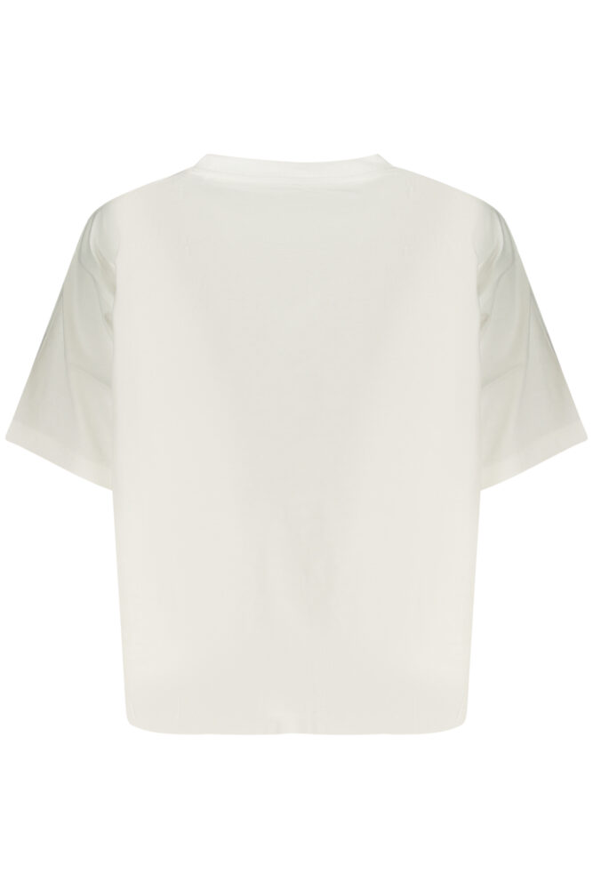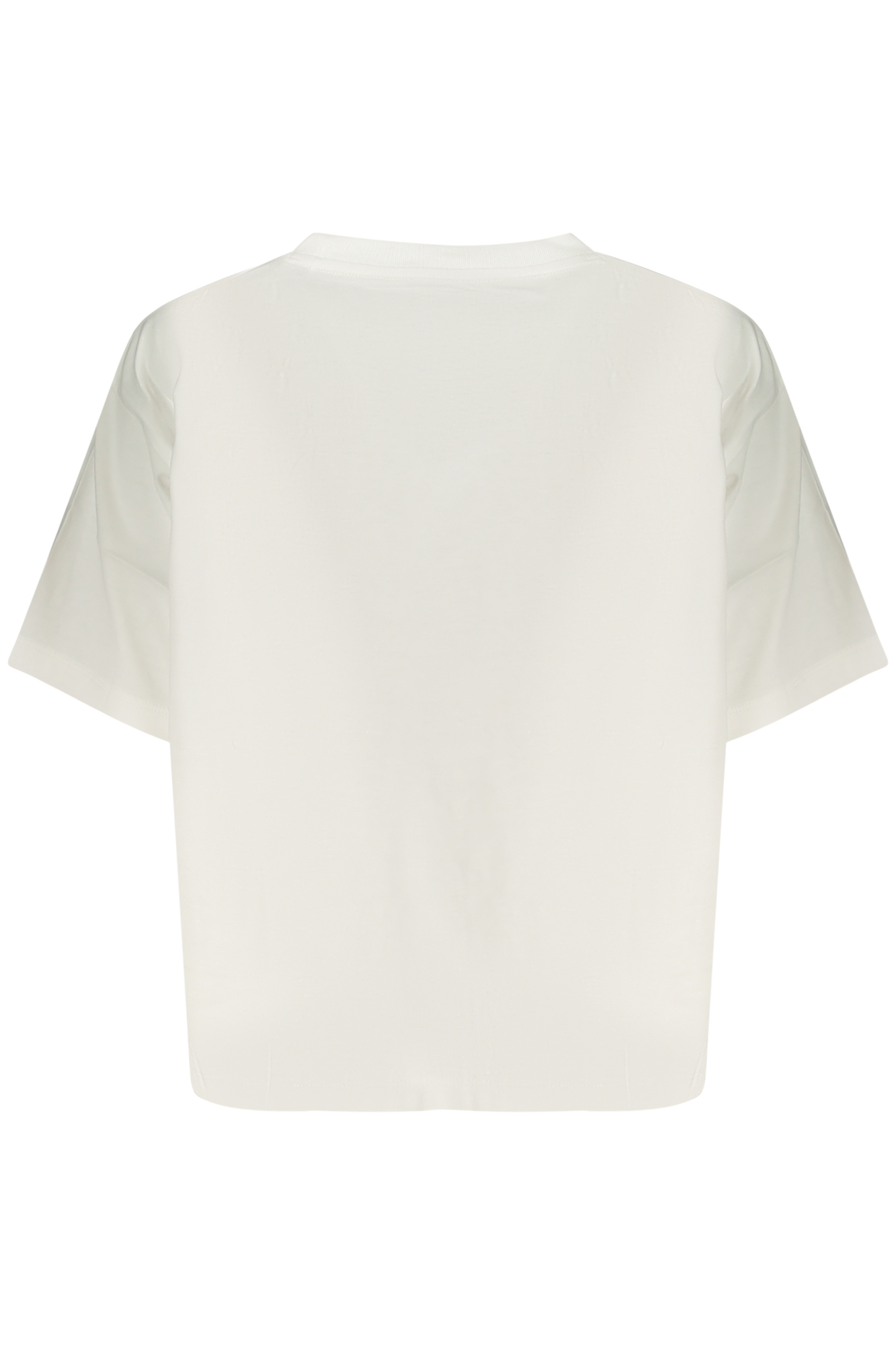 Apresenta manga curta, gola redonda e corte boxy fit, proporcionando um caimento mais largo e confortável.