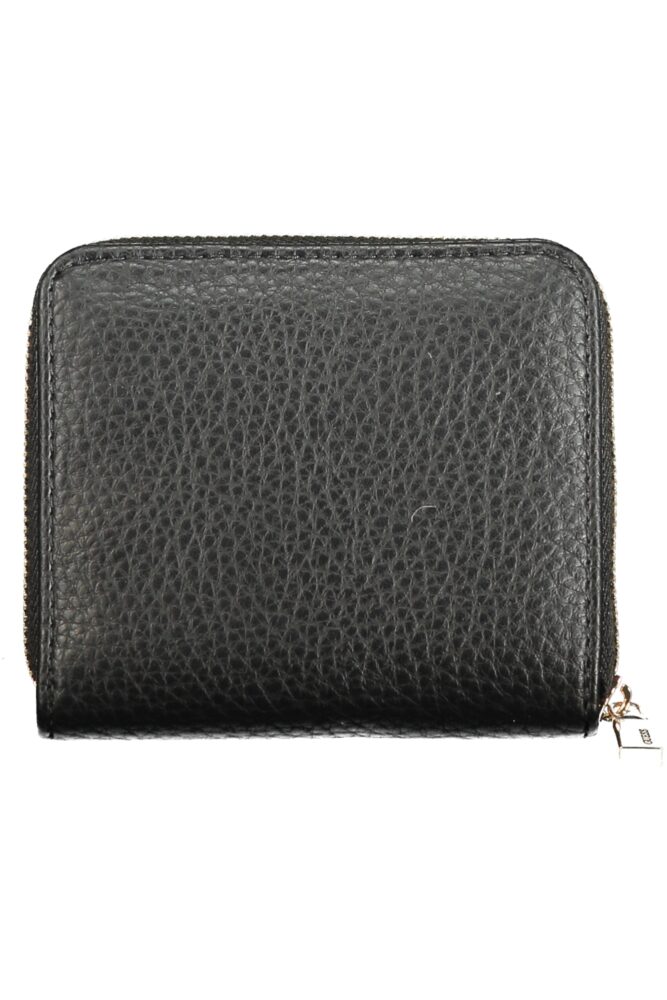 Apresenta porta-moedas, espaço interior para cartões, fecho de correr e de pressão e logótipo, ideal para organização prática no dia a dia.