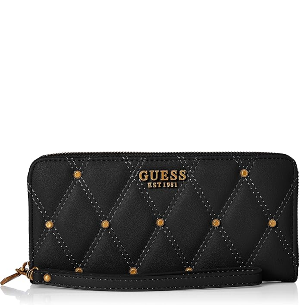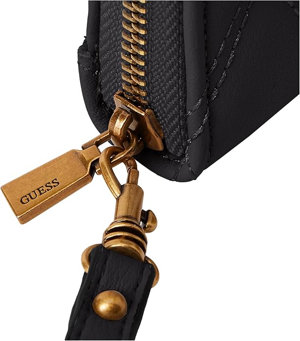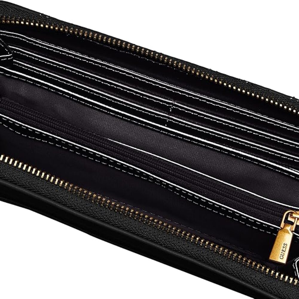 Carteira com 3 compartimentos, porta-moedas, triplos espaços para cartão, fecho de zíper, puxador longo removível, logotipo
