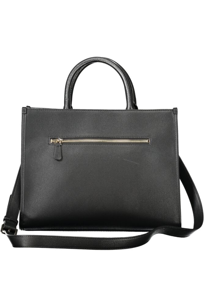 Bolsa com fita, 2 pegas, alça de ombro ajustável e amovível, 1 bolso exterior, 2 compartimentos, 1 bolso central, 1 bolso interior, espaços interiores para documentos, detalhes em contraste, fecho de correr e automático, pés protetores, logótipo