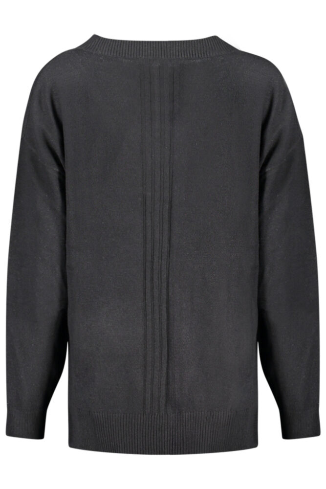 Mangas compridas, decote em v, pormenores em contraste, logótipo.