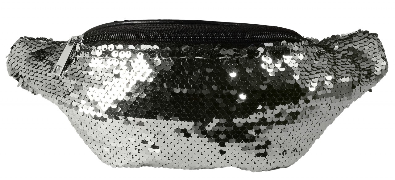 Mestre Artesão® Bolsa de Cintura Prateada em Pele Sintética e Lantejoulas - 0200