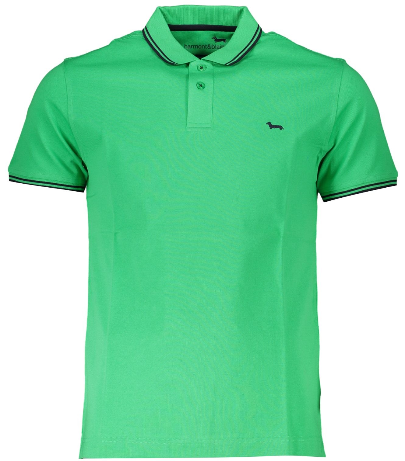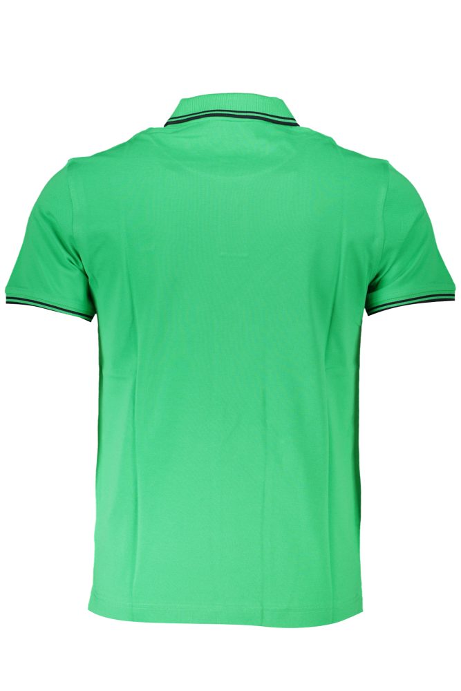 Polo de manga curta, corte justo, 2 botões, detalhes em contraste e logótipo bordado.