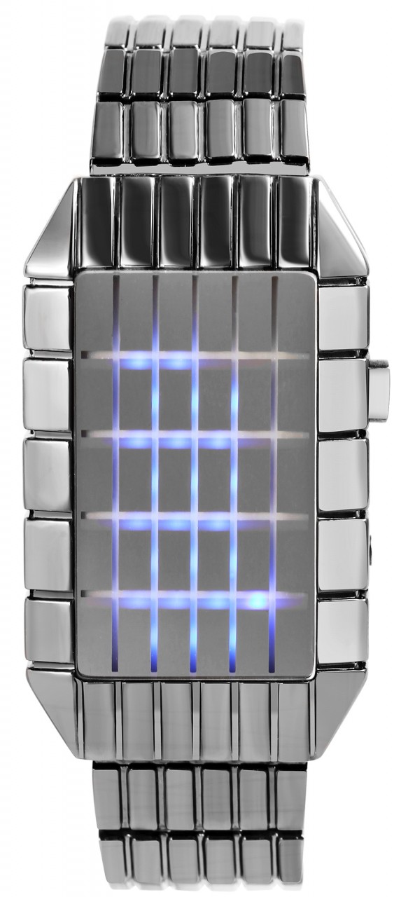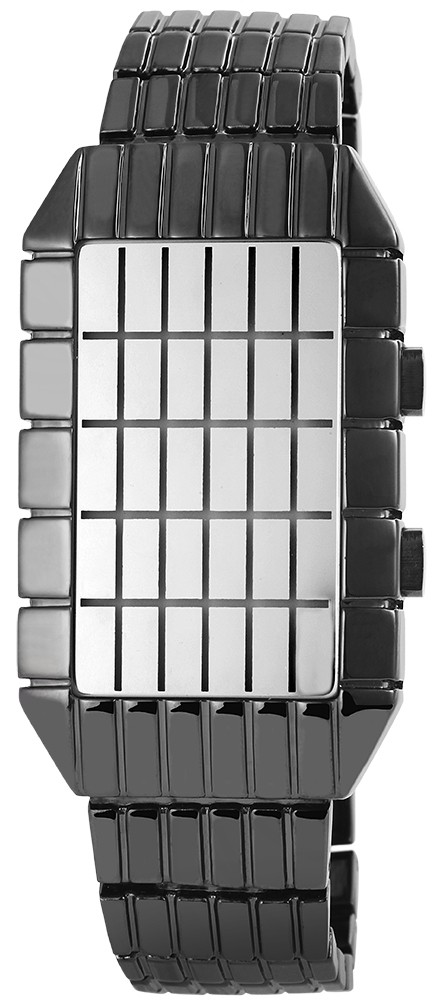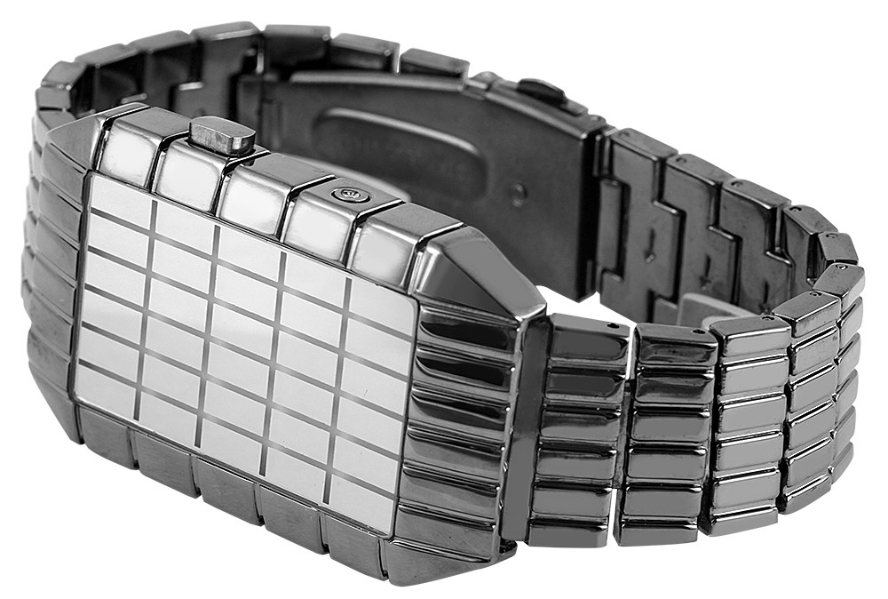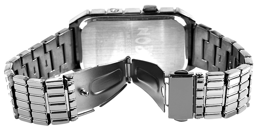 O relógio digital masculino possui um movimento de quartzo de alta qualidade. A pulseira em aço inoxidável tem 22 mm de largura e abre com um fecho dobrável em aço inoxidável. O comprimento total é de 18 cm. A caixa de metal com vidro mineral tem dimensões de 34×56 mm e altura de caixa de 9 mm. A tampa da caixa é feita de aço inoxidável. O relógio masculino possui os seguintes recursos: Exibição de data.