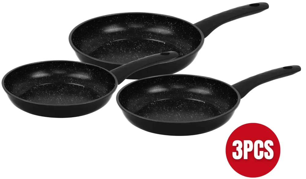 - Conjunto completo: O conjunto inclui peças essenciais para uma variedade de necessidades culinárias: frigideira de 20 x 4 cm, frigideira de 28 x 5 cm e frigideira de 24 x 4,5 cm, oferecendo uma solução completa para tarefas diárias de cozinha.