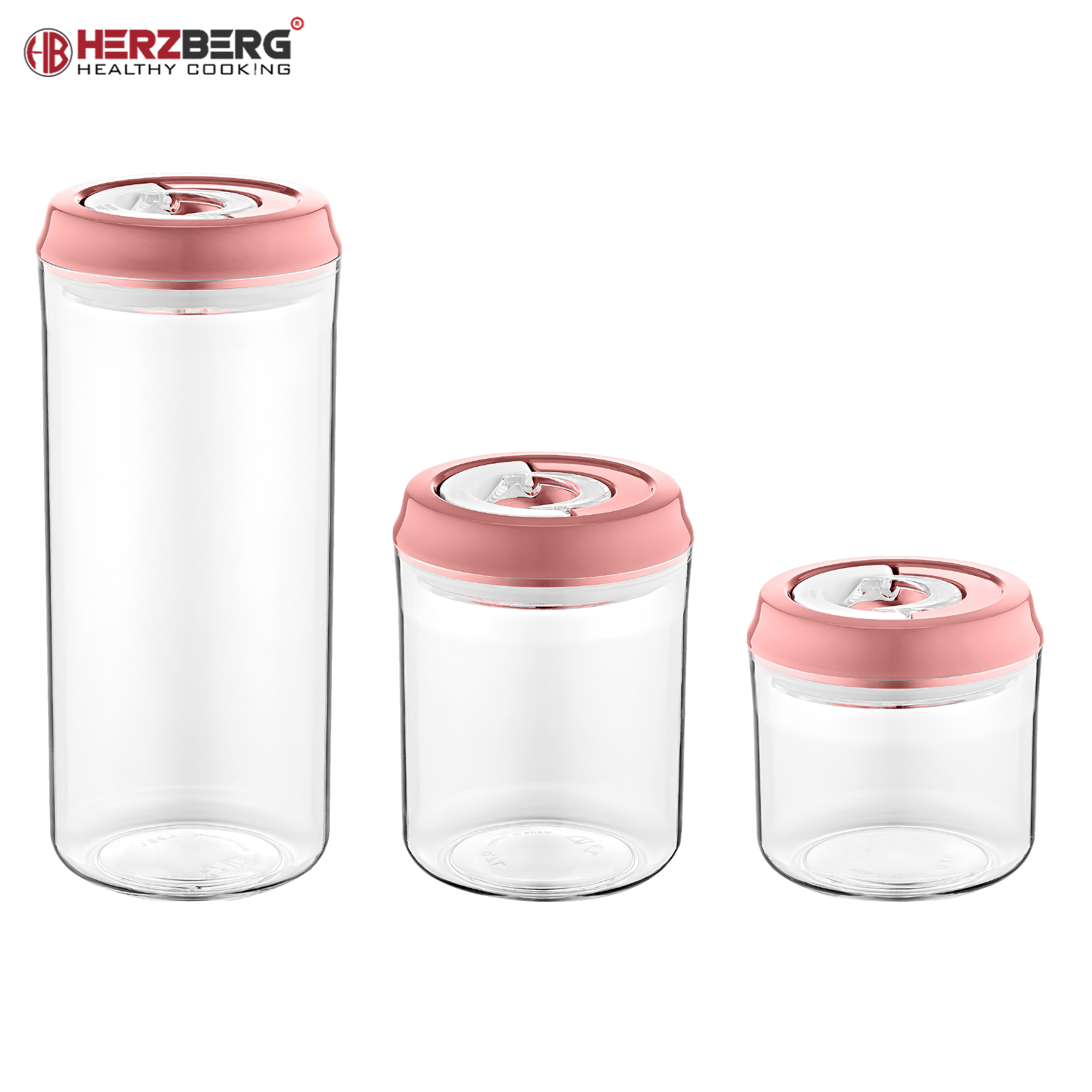 Herzberg® Conjunto de Frascos de Armazenamento em Vácuo Rosa