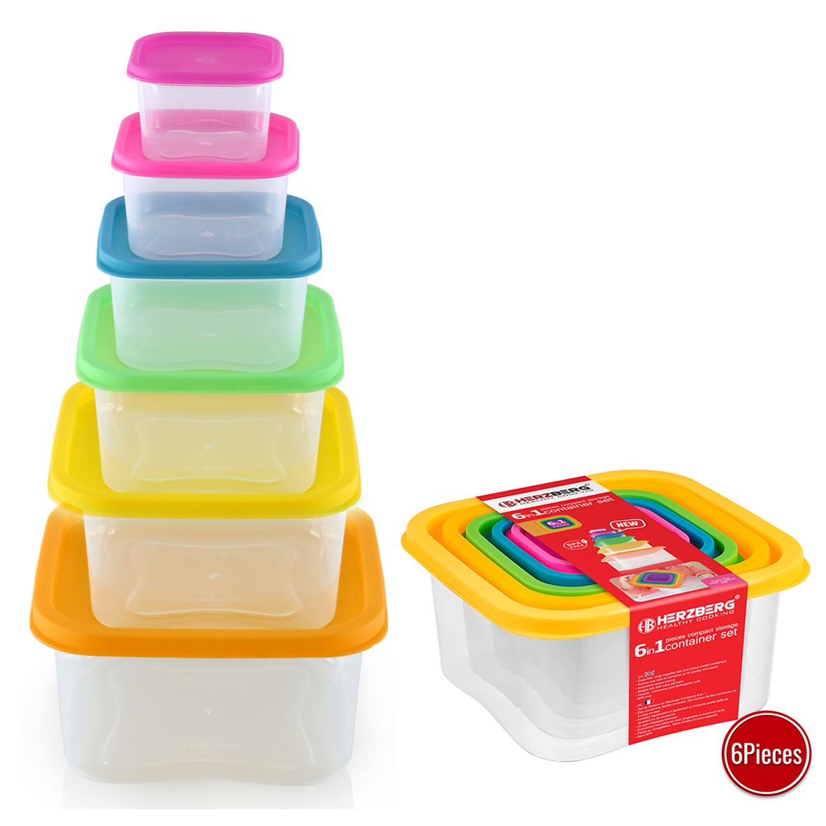 Herzberg HG-SFS6N1: conjunto de recipientes quadrados para armazenamento de alimentos 6 em 1