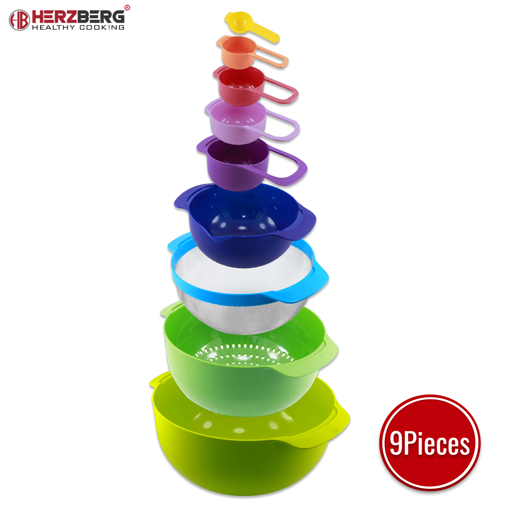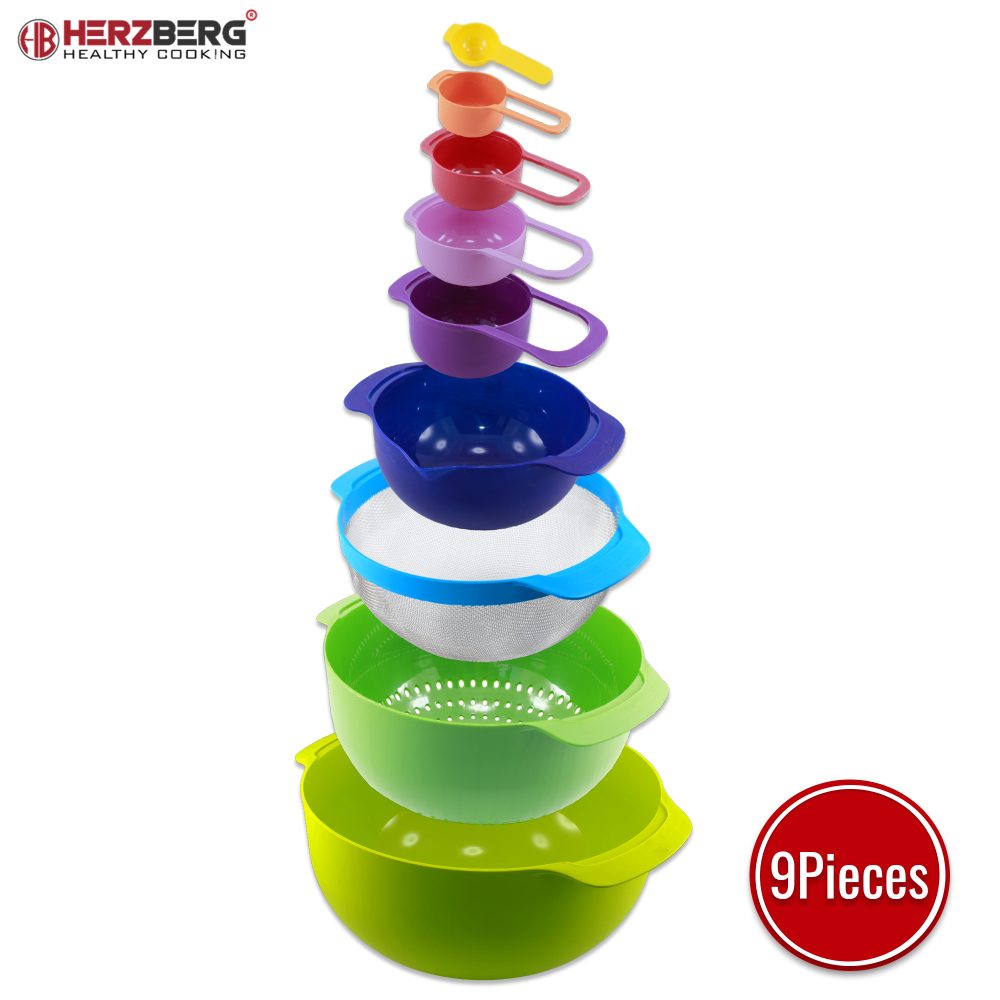 Herzberg HG-BOL9N1FS: conjunto de tigela 9 em 1 e copos medidores