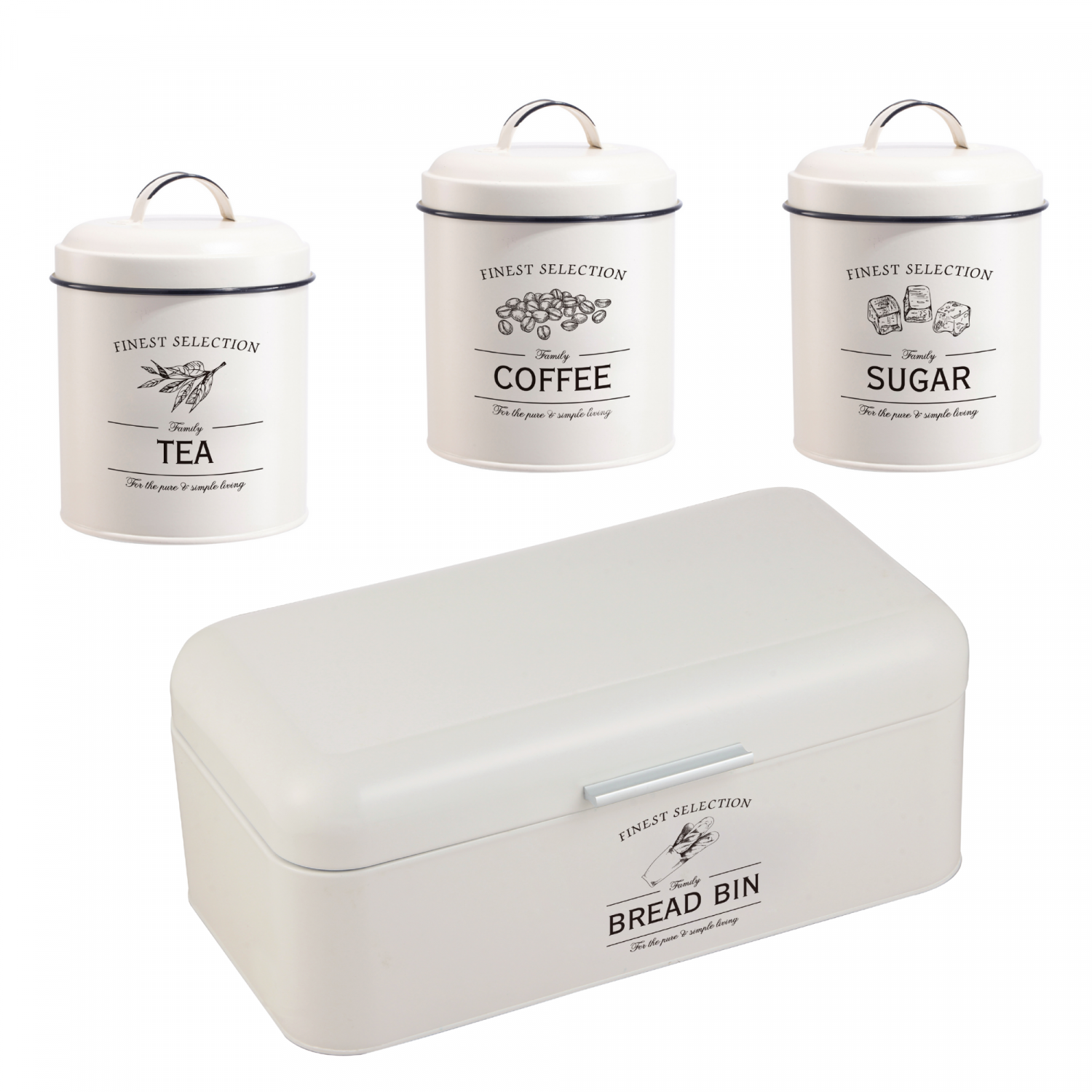 Herzberg HG-04418: Conjunto de 4 peças de caixa de pão vintage e lata – creme fosco