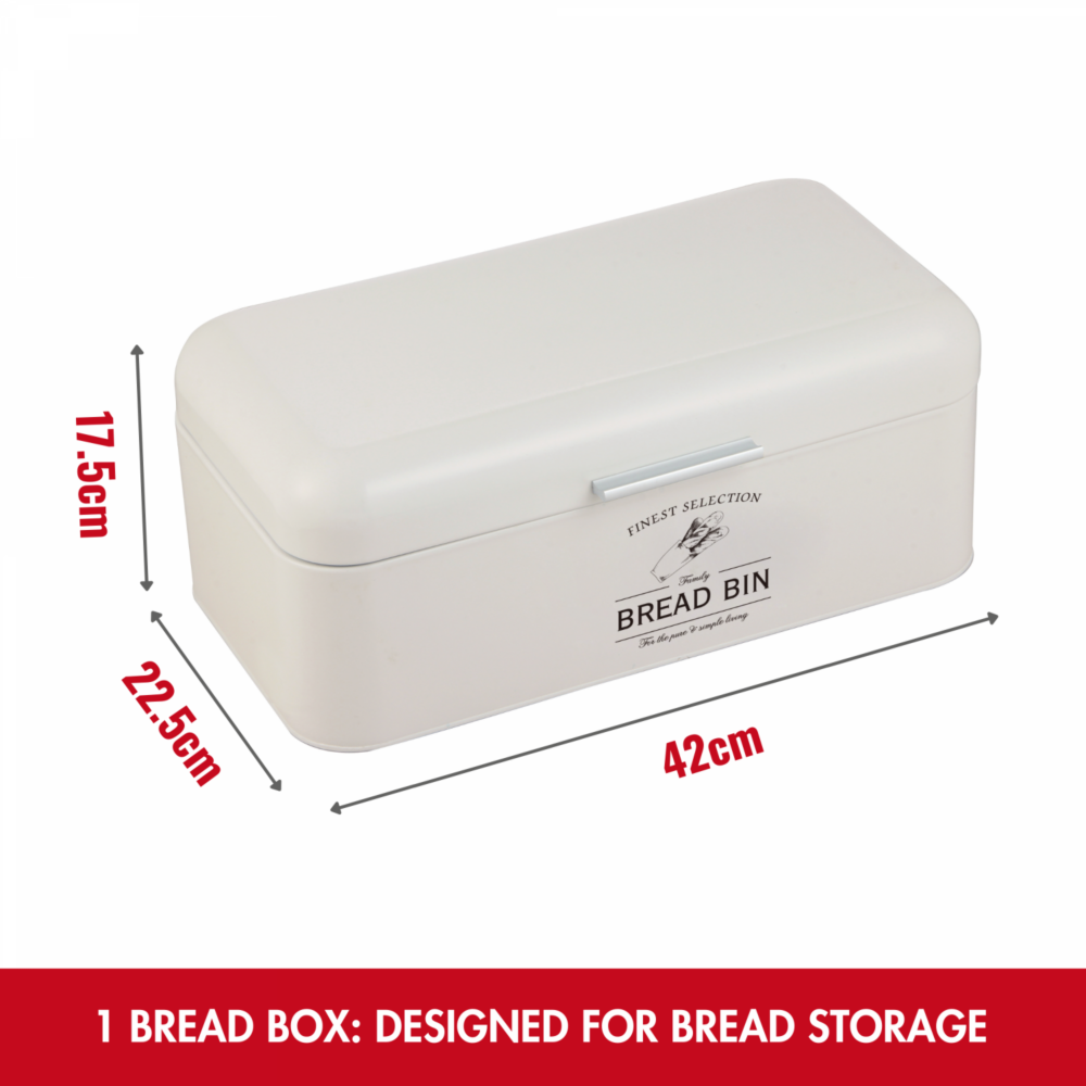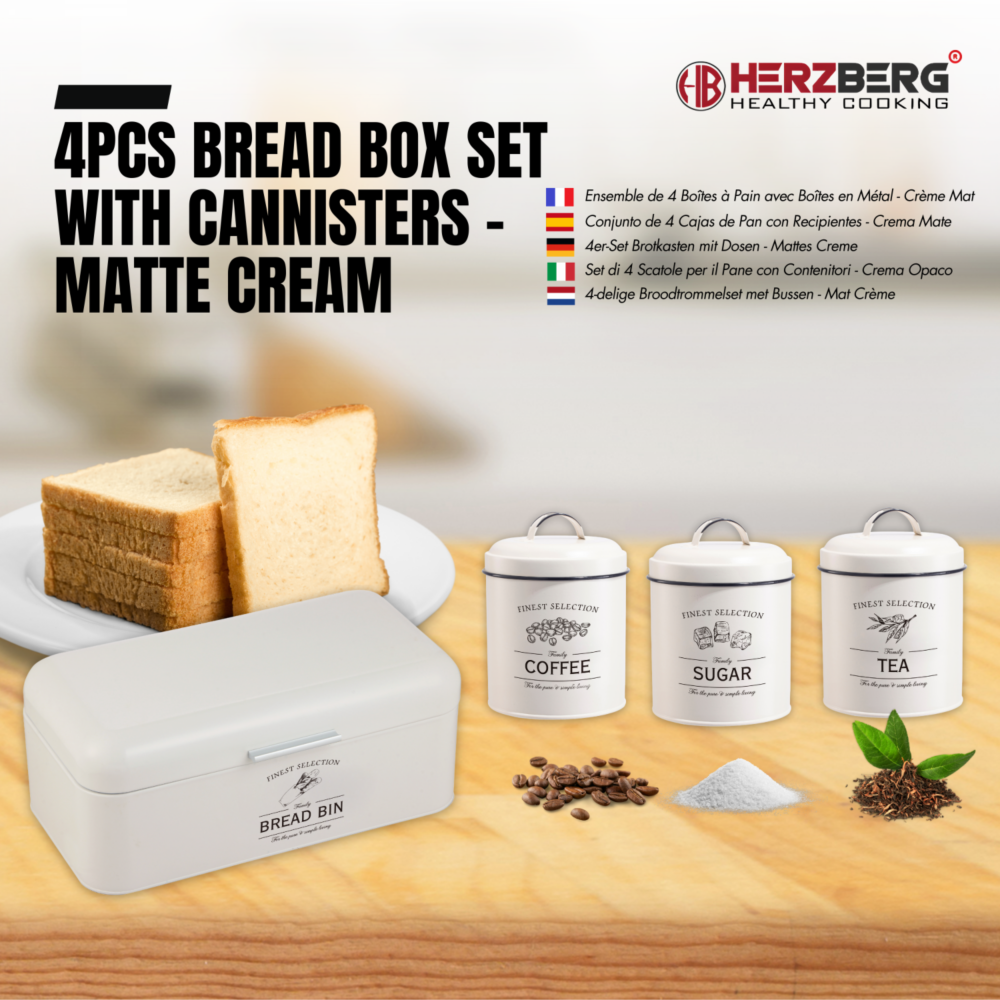 Herzberg HG-04418: Conjunto de 4 peças de caixa de pão vintage e lata – creme fosco