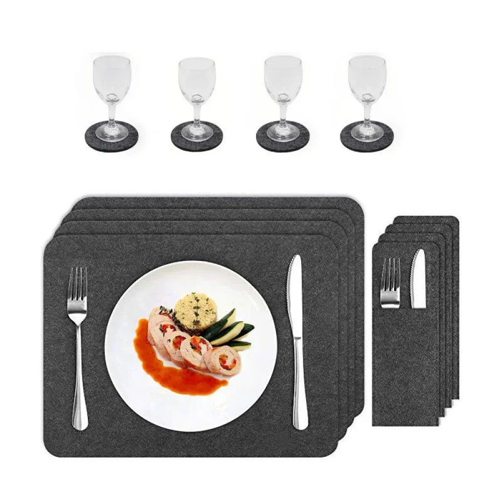 Eleve a sua experiência gastronômica com o conjunto de mesa de jantar e porta-copos de feltro natural Herzberg, criado para adicionar um toque de elegância e, ao mesmo tempo, fornecer proteção prática para a superfície da sua mesa. Feitos de feltro de alta qualidade com espessura de 5 mm, esses jogos americanos, porta-talheres e porta-copos oferecem durabilidade e resiliência excepcionais contra manchas, arranhões e descoloração. Esteja você organizando um jantar formal ou desfrutando de uma refeição casual com a família, esses jogos americanos oferecem um cenário elegante, garantindo que sua mesa permaneça imaculada.