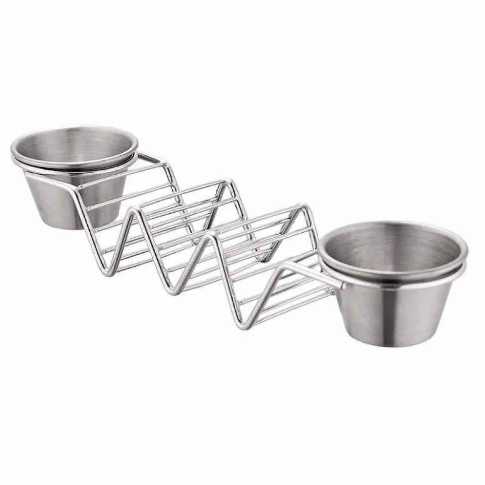 Limpar depois da noite do taco é muito fácil, pois este suporte para taco pode ser lavado na máquina de lavar louça, oferecendo comodidade e tranquilidade. Cada suporte de metal para tacos pode conter até 3 tacos por vez, garantindo fácil servir para seus convidados ou familiares. Acompanhado de 2 xícaras de molho, este porta taco adiciona funcionalidade e estilo à sua experiência gastronômica.