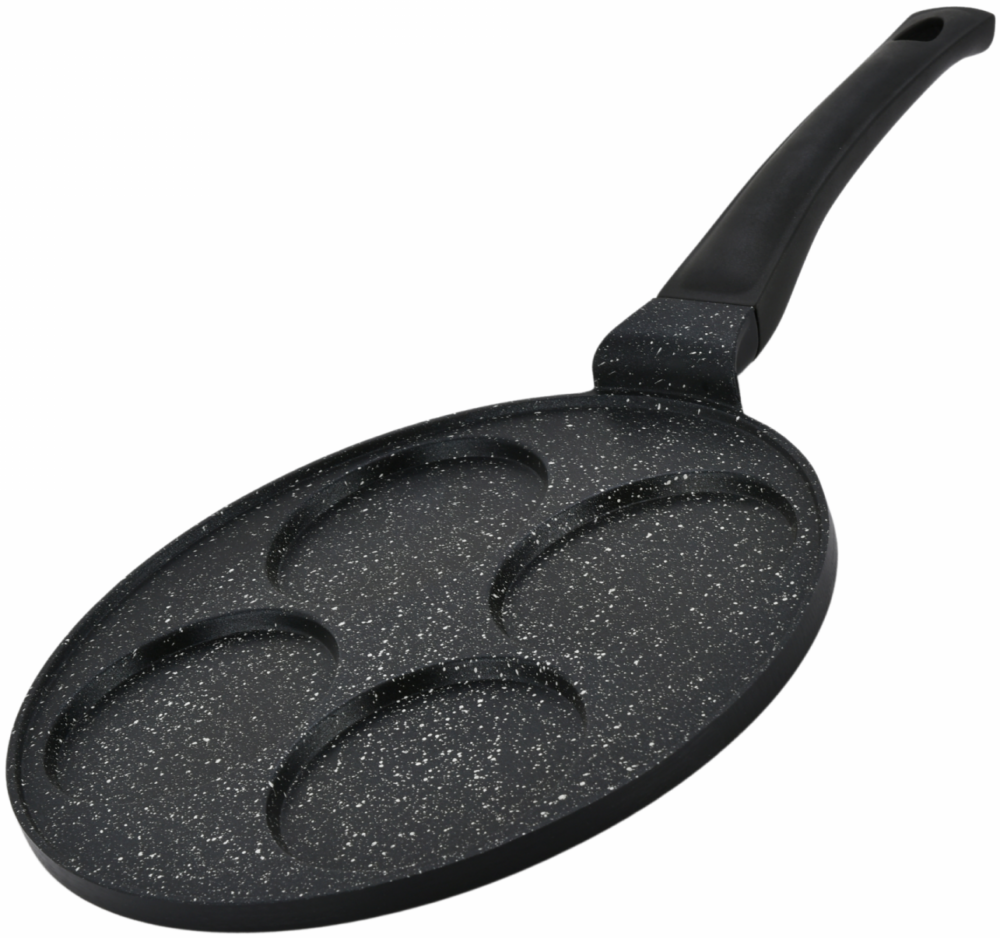 Equipada com quatro slots, esta panela de panqueca permite que você cozinhe diferentes alimentos simultaneamente, oferecendo combinações versáteis de café da manhã. A alça ergonômica permanece fria rapidamente, fornecendo isolamento térmico eficiente durante suas sessões de cozimento. A panela aquece rápida e uniformemente devido à robustez do alumínio fundido, garantindo que suas panquecas ou omeletes sejam perfeitamente cozidas sem manchas escuras.