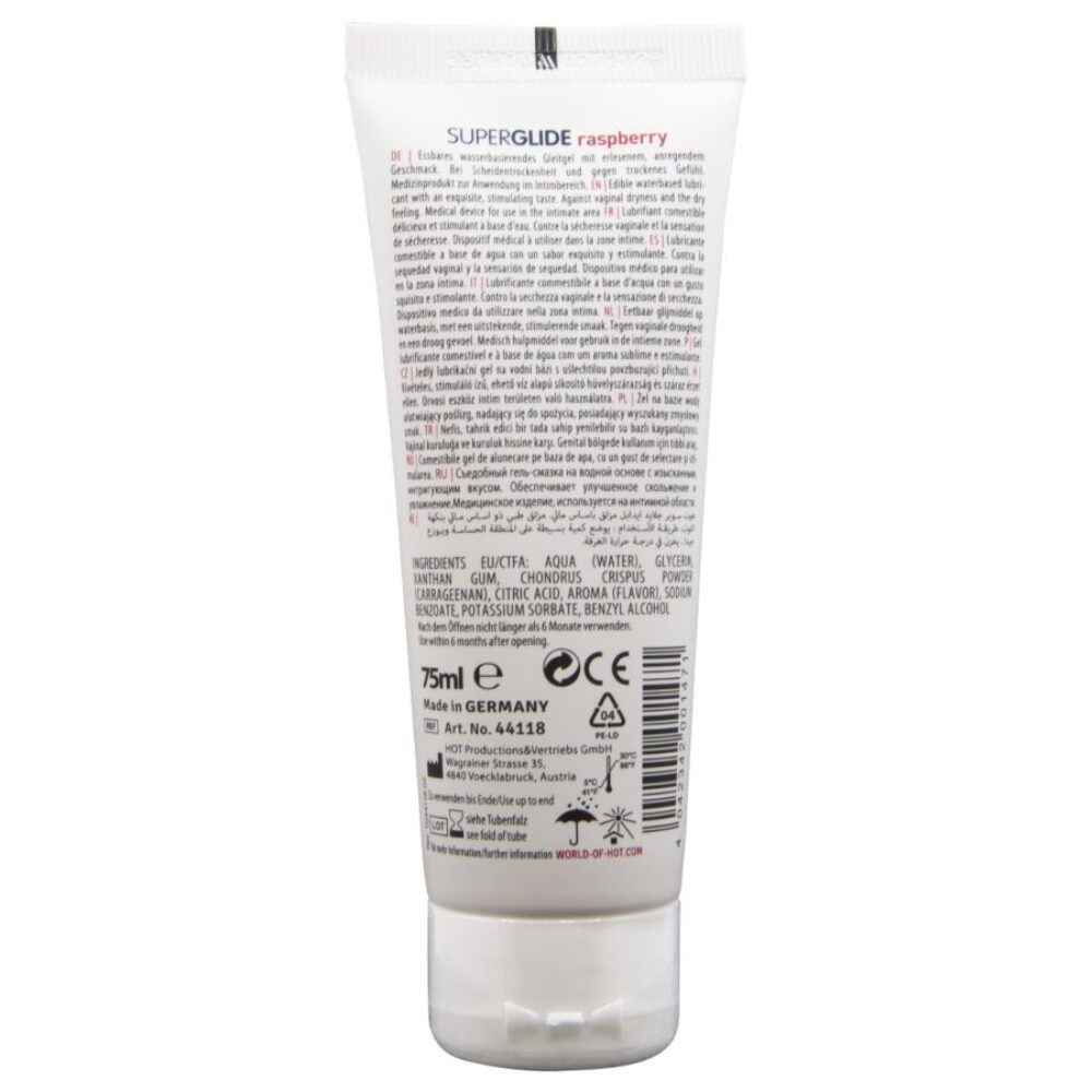 Um gel lubrificante 100% comestível! Este gel à base de água possui um delicioso sabor de framboesa, desenvolvido para transformar seus encontros mais íntimos em uma experiência doce e tentadora.