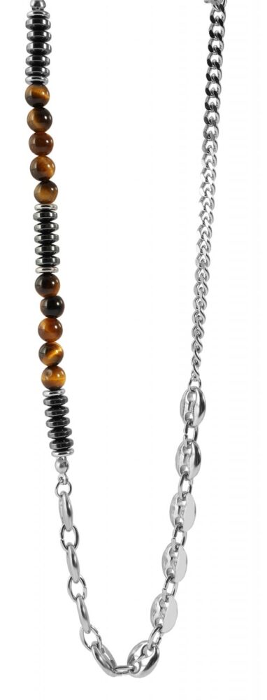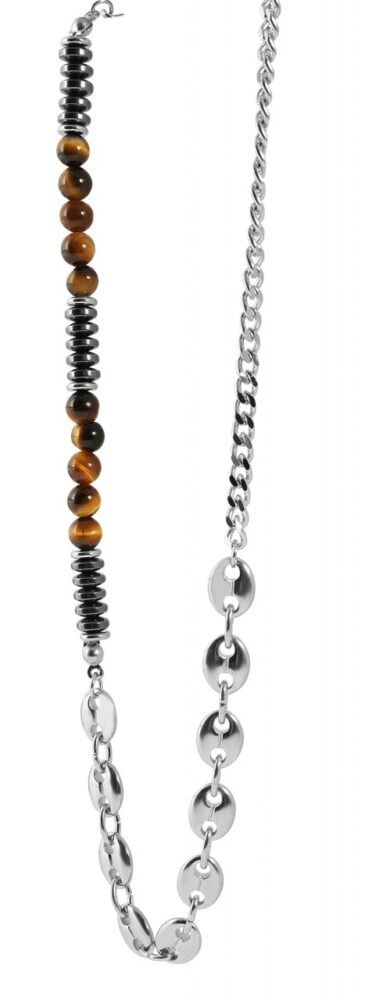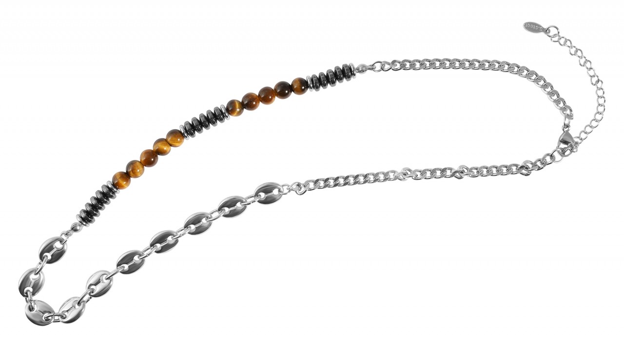 Akzent® Corrente "Hunter " em Aço Inoxidável e Pedras Olho de Tigre - 0604