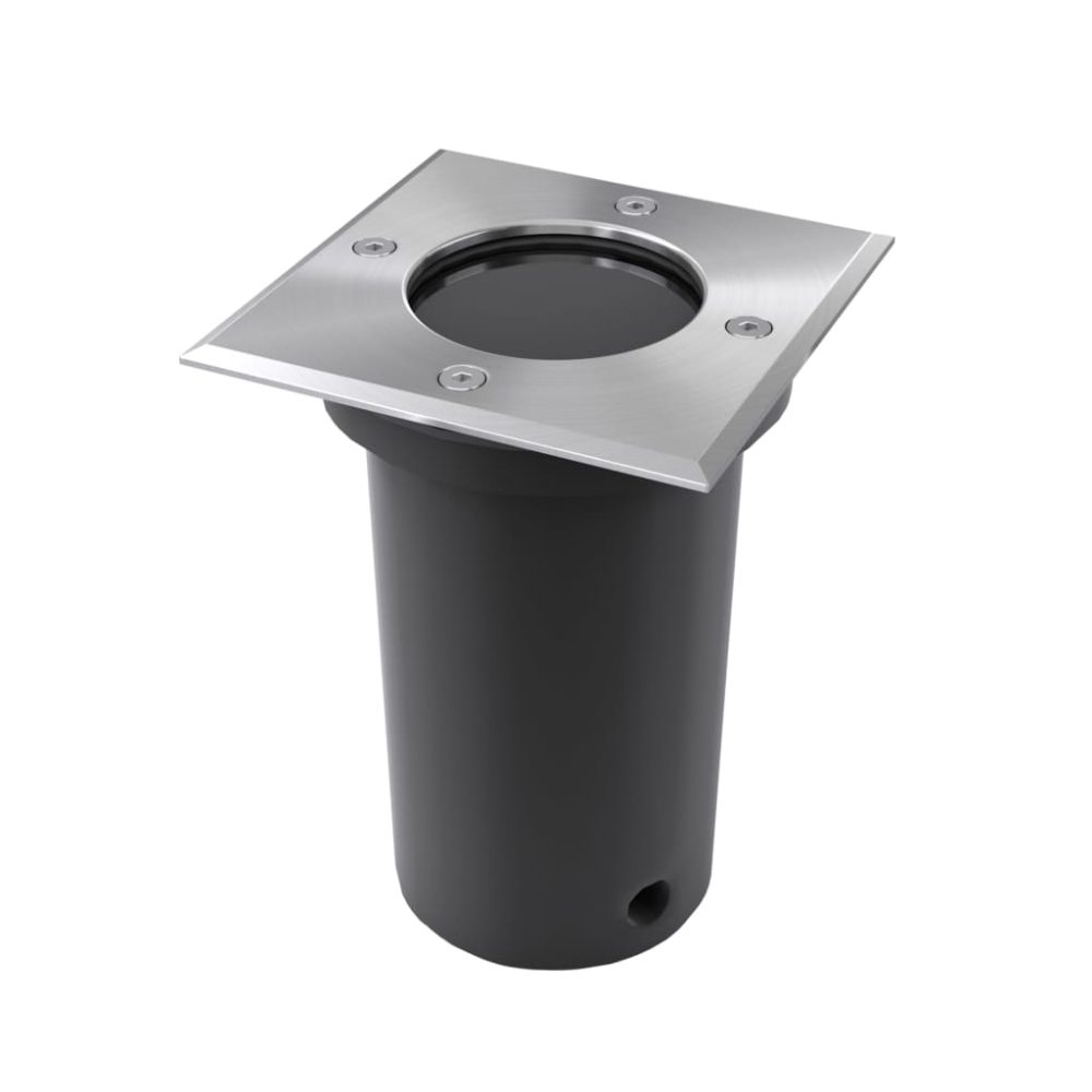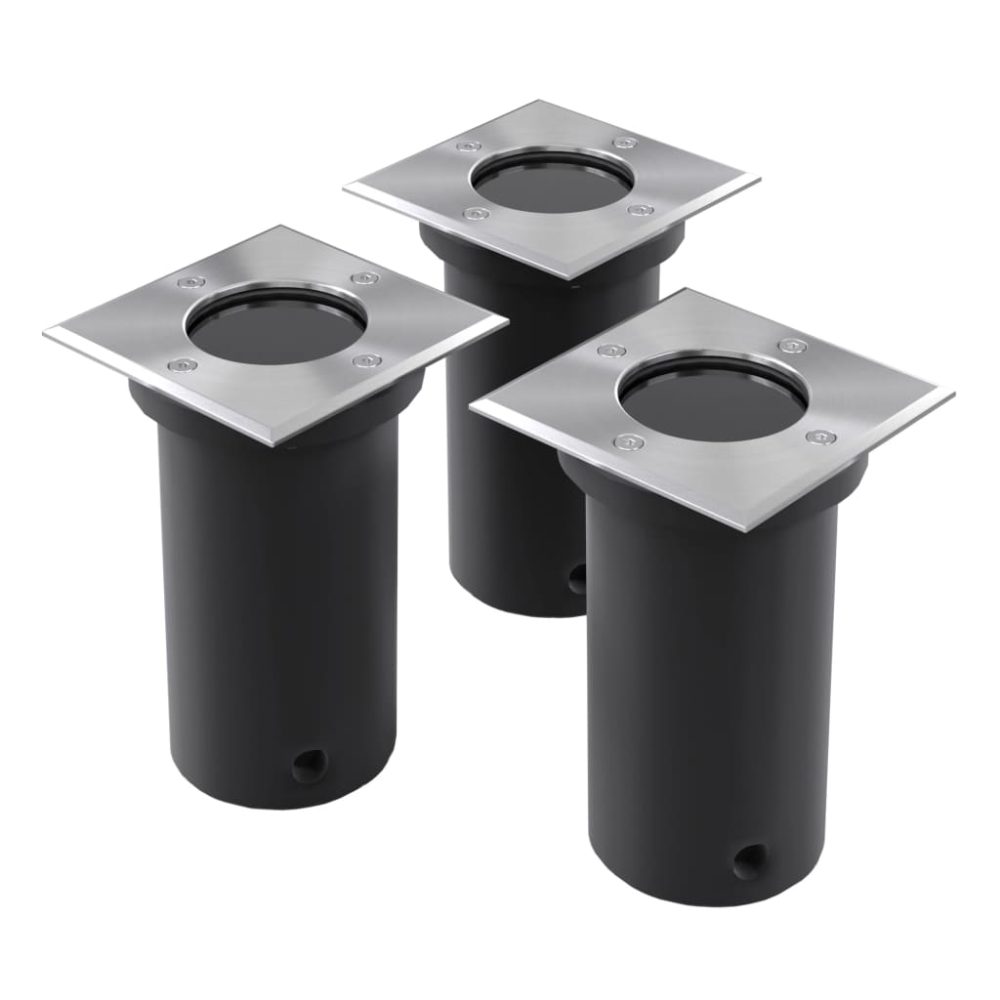 O conjunto de iluminações de chão é feito em aço inoxidável e alumínio e cada iluminação possui um difusor de vidro temperado. Estas luzes de chão podem ser facilmente montadas.