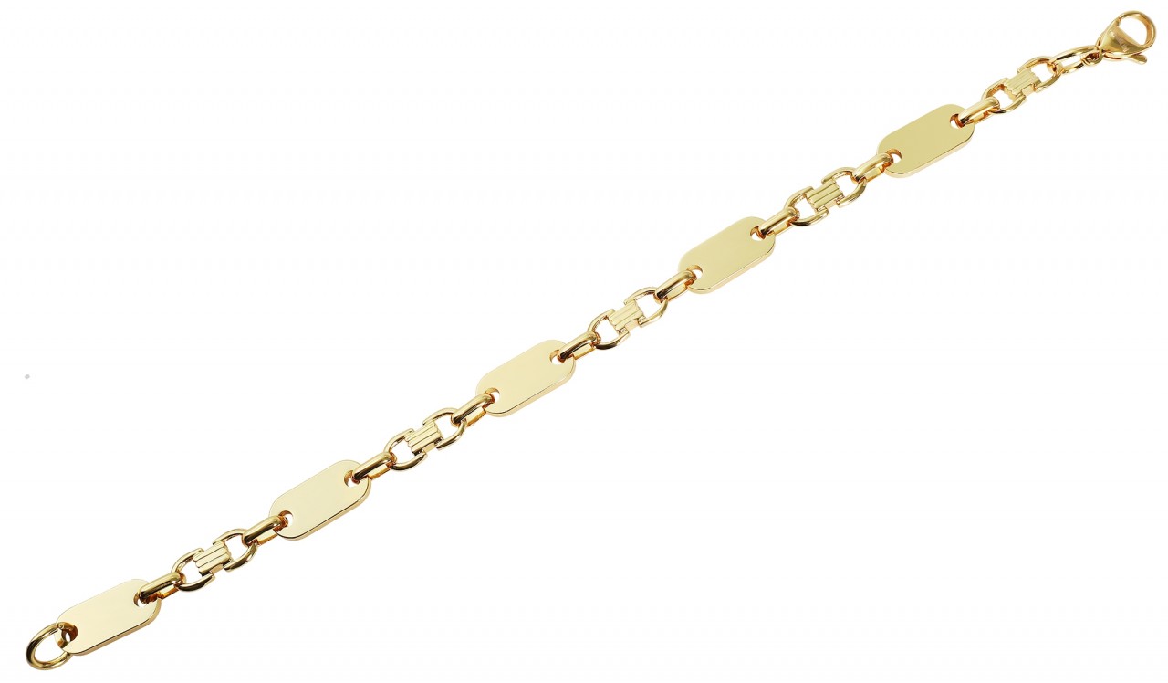 Ino – muito espaço para uma gravação personalizada, aqui não há limites. Esta pulseira em aço inoxidável está disponível em dois comprimentos: 19 cm e 21 cm. As placas de gravação e os elementos texturados conferem à pulseira um aspeto impressionante. Uma gravação personalizada – as placas individuais de 18 x 8 mm oferecem espaço suficiente para o efeito. O fecho lagosta garante uma fixação segura e facilita a colocação e a retirada. Combine esta pulseira com o colar “Benja” a condizer