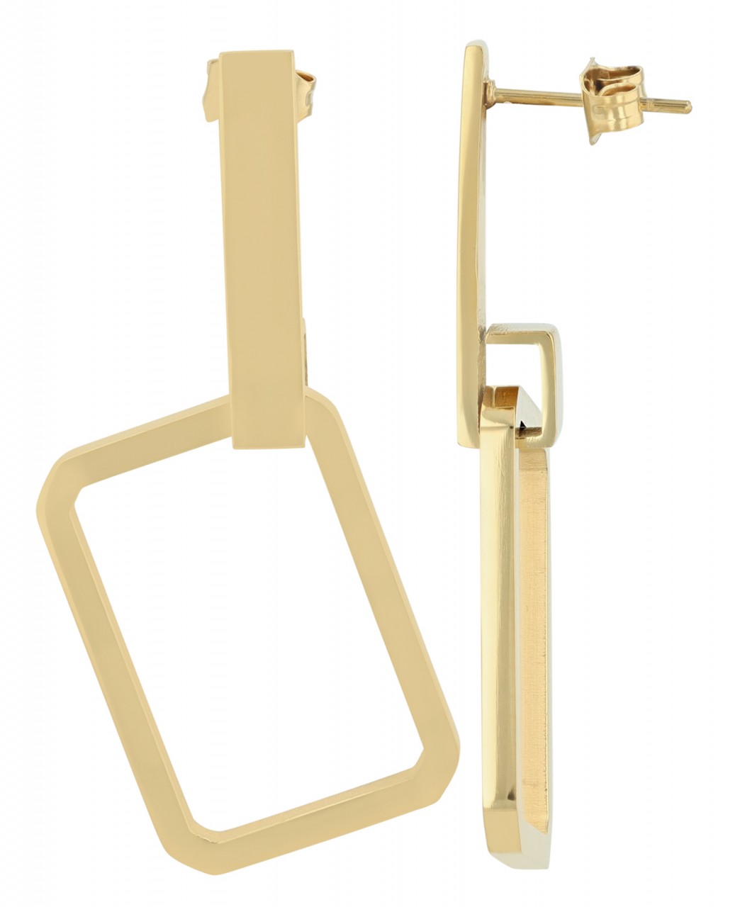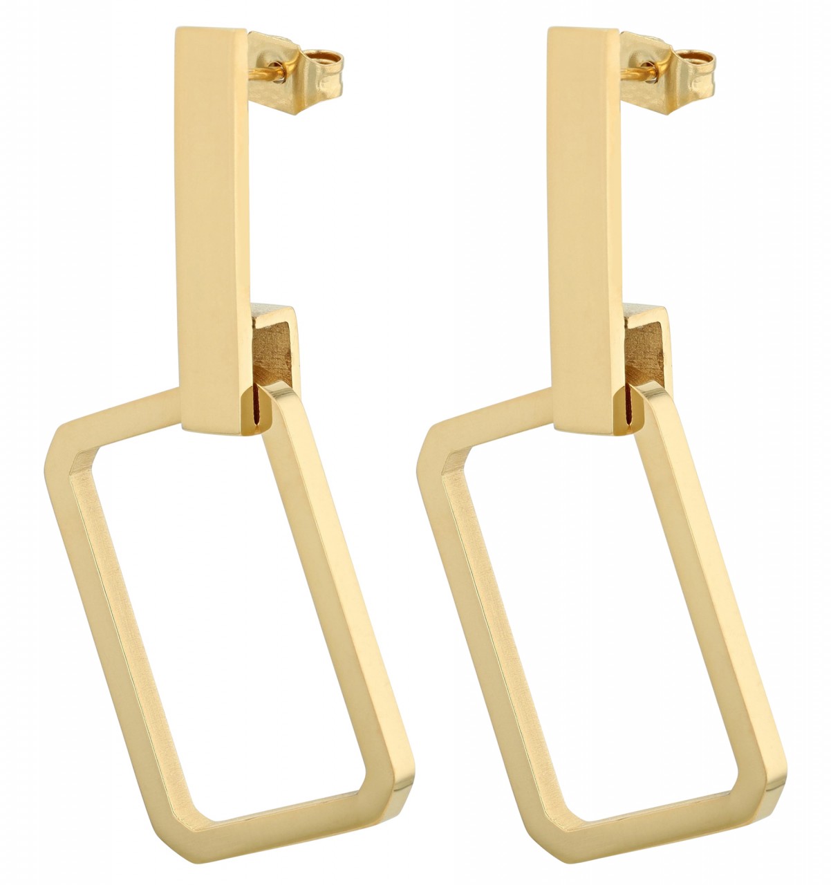Estes brincos requintados combinam a elegância clássica com um estilo moderno. A peça de encaixe fixa mede 20 mm e proporciona uma fixação segura, enquanto o pendente quadrado (23 x 16 mm) assegura um aspeto harmonioso. Disponíveis numa elegante combinação de ouro e prata, estas peças de joalharia irradiam sofisticação com estilo. Um toque de luxo para todas as ocasiões – perfeito para dar um toque elegante ao seu visual.