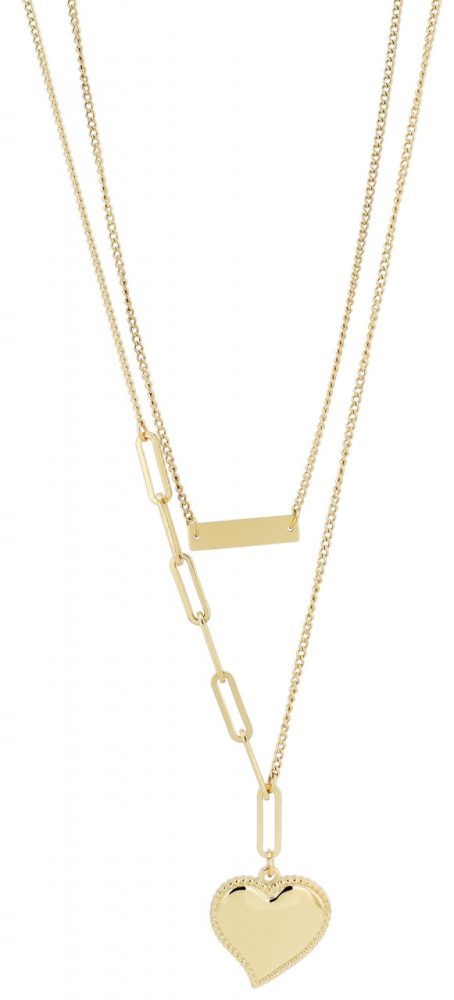 Colar em aço inoxidável de duas camadas “Janan” com pingentes. Na corrente de 43 cm uma placa de gravação (2 cm x 0,5 cm). Na corrente de 47 cm um pingente de coração. A corrente de âncora impressiona pelo seu design especial com área de 8 cm, em que os elos da corrente são mais grossos e mais afastados.